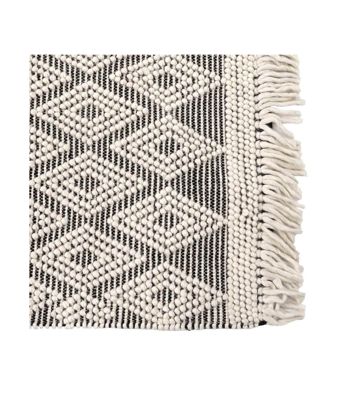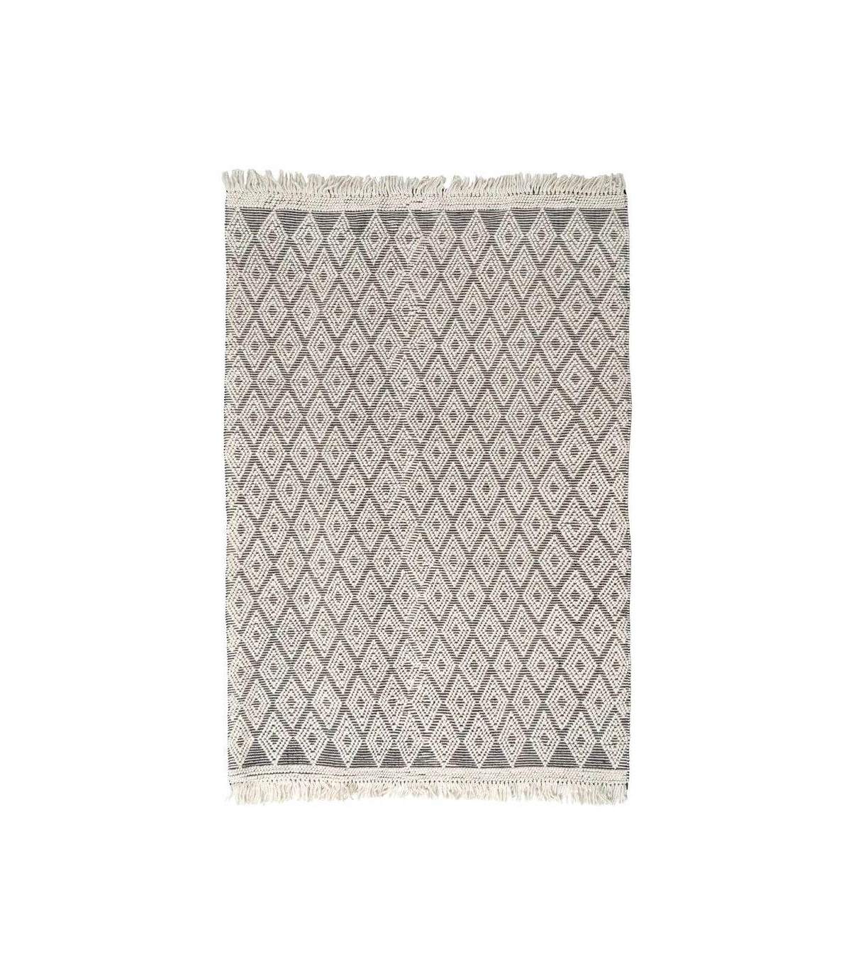 ALFOMBRA XL 200 X 300 ROMBLU LANA Y ALGODON NEGRA Y BLANCA