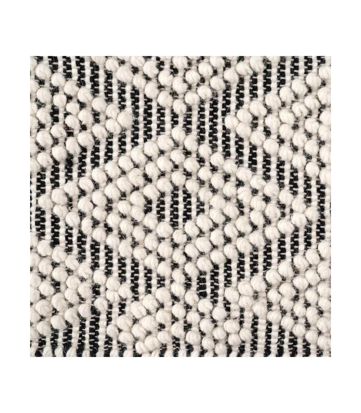 Alfombra de diseño contemporáneo que aporta equilibrio, textura y confort visual al espacio. Su dibujo de rombos entrelazados en blanco y negro crea un contraste suave que dinamiza el ambiente con sutileza. La trama tejida a mano respira naturalidad, evocando el arte del tejido tradicional reinterpretado con líneas actuales.