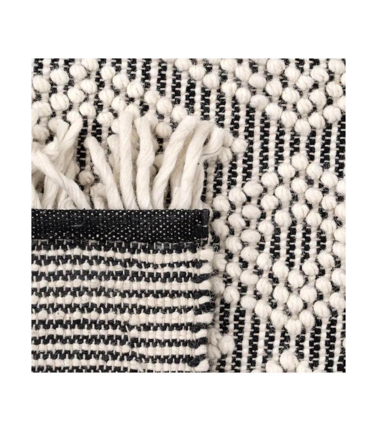 🎨 Acabado: Trenzado artesanal creando dibujo de rombo en blanco y negro. Fabricación artesanal, entendemos las variaciones de tonalidad, tamaño y forma o ciertas imperfecciones como un valor añadido que la convierten en pieza única.