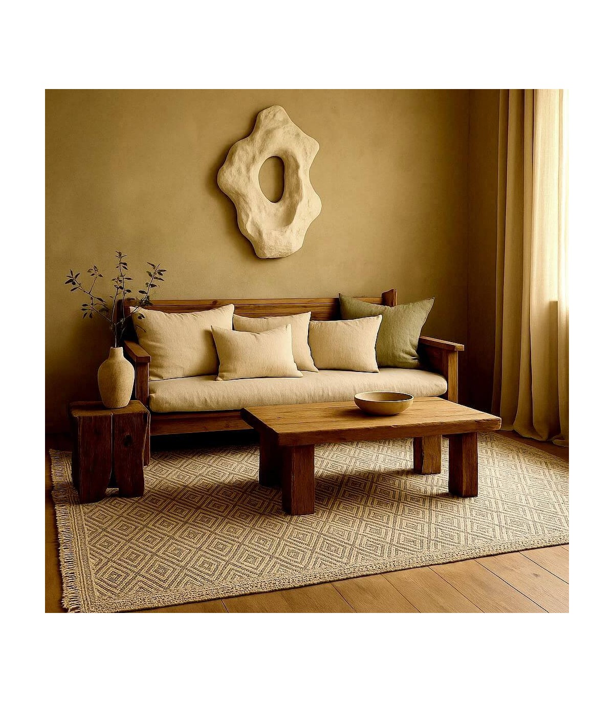 Su presencia transforma el suelo en un punto focal acogedor, ideal para salones amplios o dormitorios relajados. Una pieza que combina calidez, diseño y sencillez con una elegancia serena y atemporal.
