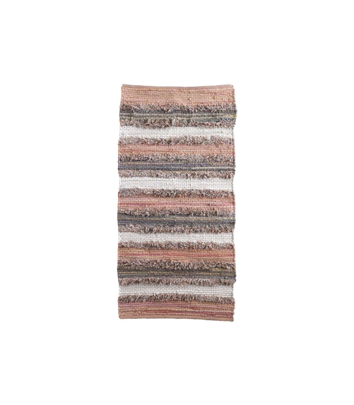 Añade calidez y estilo a tu hogar con esta alfombra tejida a mano en tonos rosa, gris y blanco. Su diseño contemporáneo aporta un toque elegante y versátil, ideal para cualquier estancia. Confeccionada con una mezcla de algodón y poliéster, es suave al tacto y resistente al uso diario.