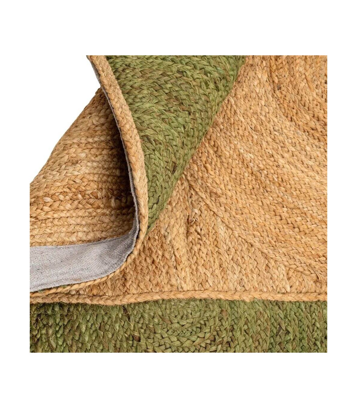 ALFOMBRA RECTANGULAR GRANDE 200 X 290 BRONA YUTE NATURAL Y VERDE