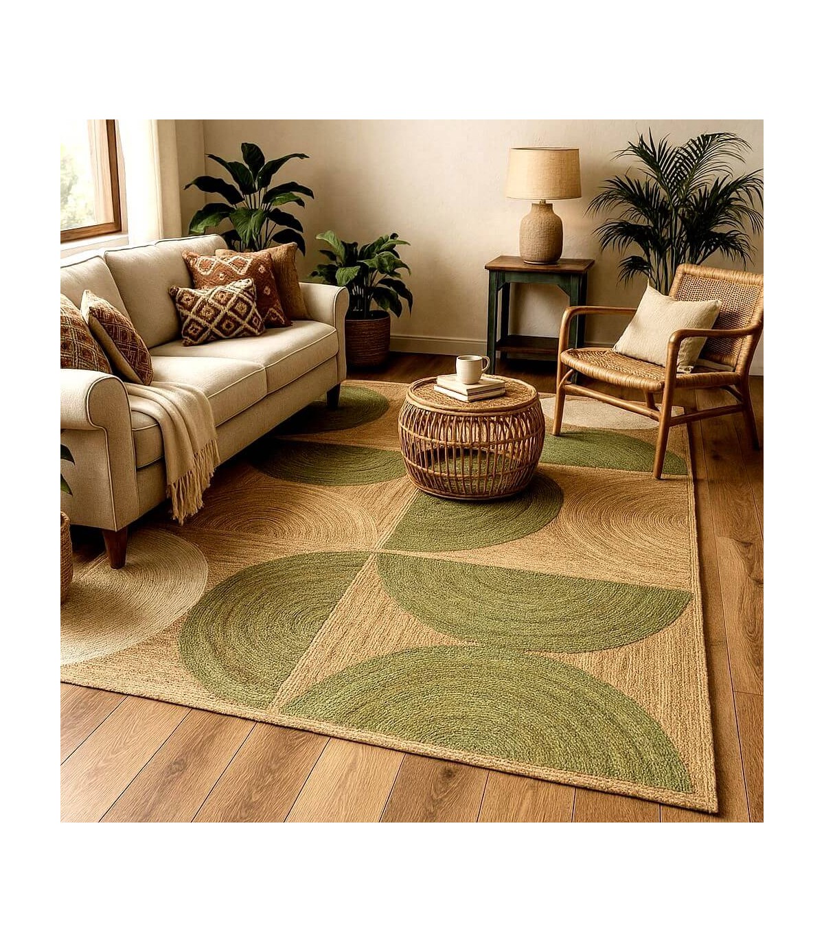 🌿 Alfombra de Yute Verde Natural – Estilo Boho Moderno 🤎