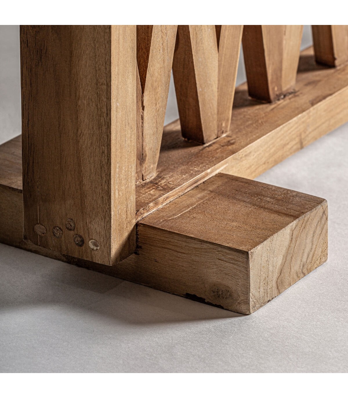Cada pieza está cuidadosamente ensamblada para resaltar la belleza natural de la madera y su veta viva, transmitiendo autenticidad y carácter. Ideal para interiores que combinan estilo tradicional con toques exóticos y materiales nobles.