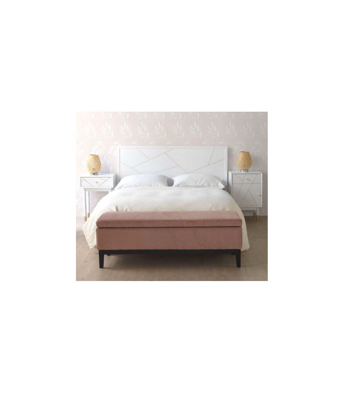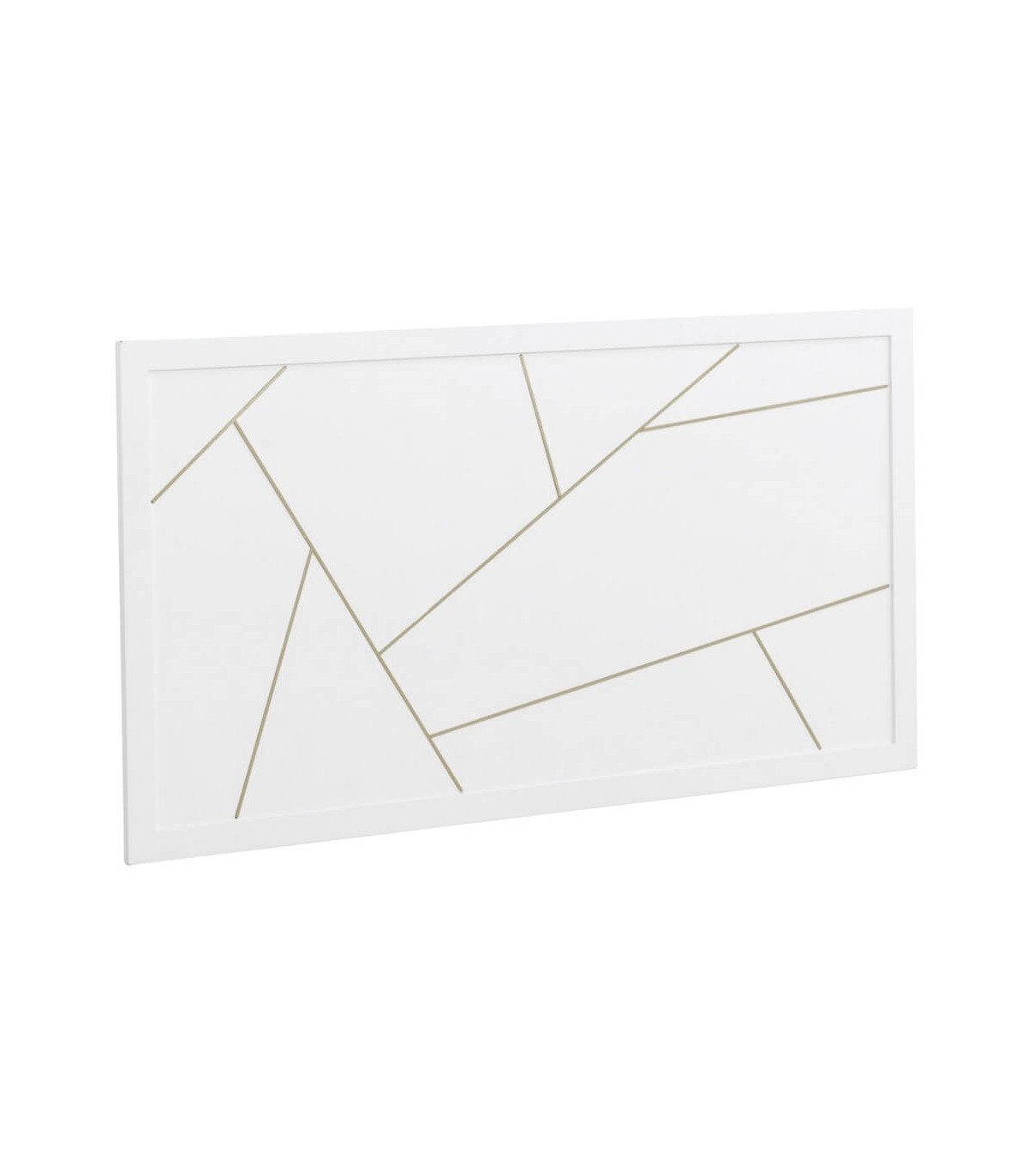 Cabecero para cama de 90 o 100 de nuestra colección Clarky, una colección que se caracteriza por su luminosidad, lacada en blanco mate con incrustaciones metálicas acabado oro, una colección de muebles de estilo art decó con un punto chic, perfecta para tu dormitorio o tu salón.