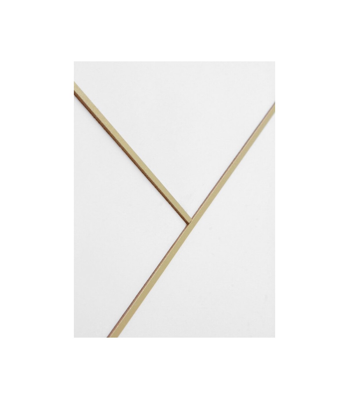 Acabado, madera lacada en blanco mate, tiradores e incrustaciones metálicas acabado dorado.