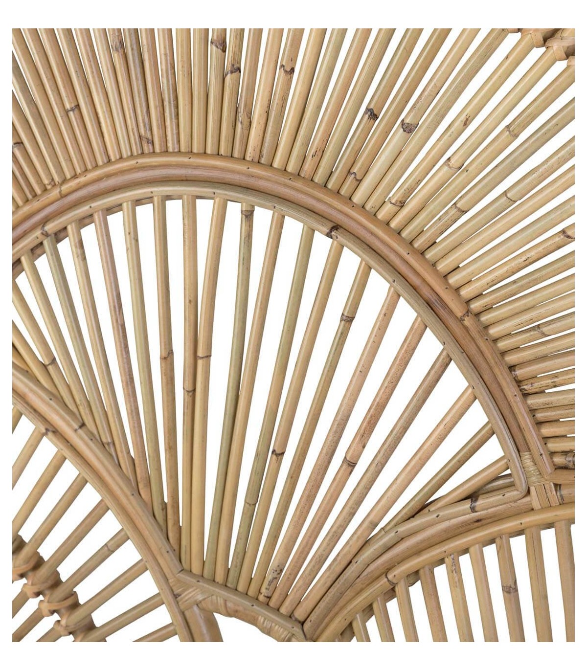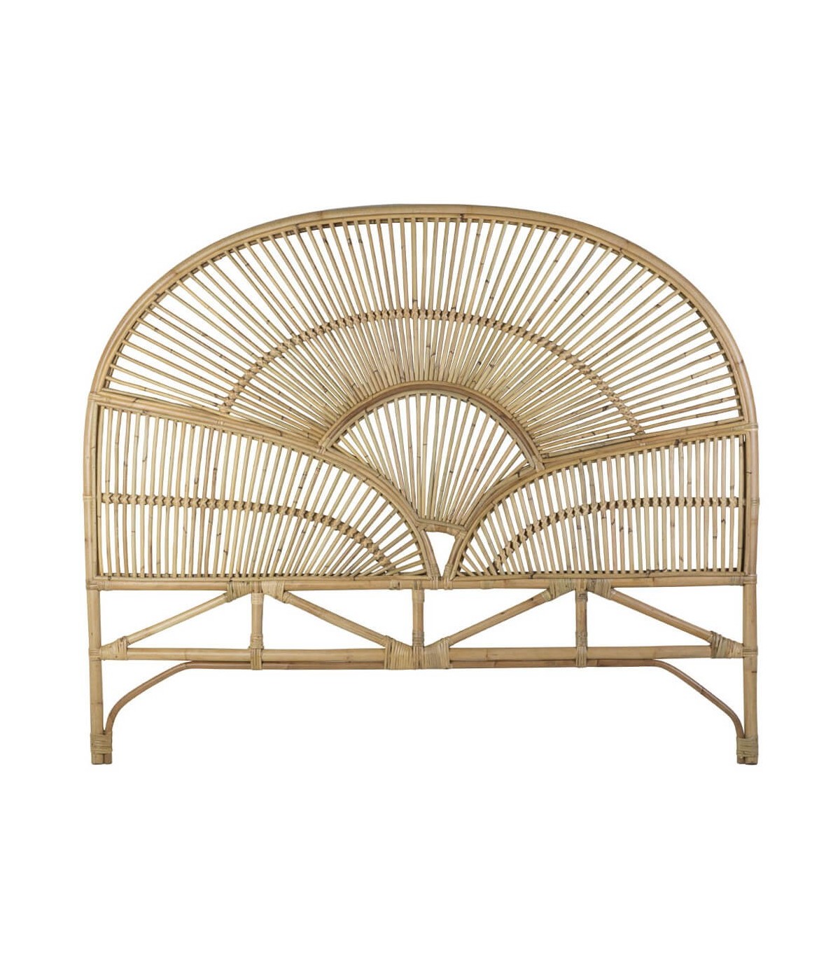 Bonito, ligero y decorativo cabecero para cama de matrimonio, destaca su altura y su diseño etéreo realizado en fibras naturales.