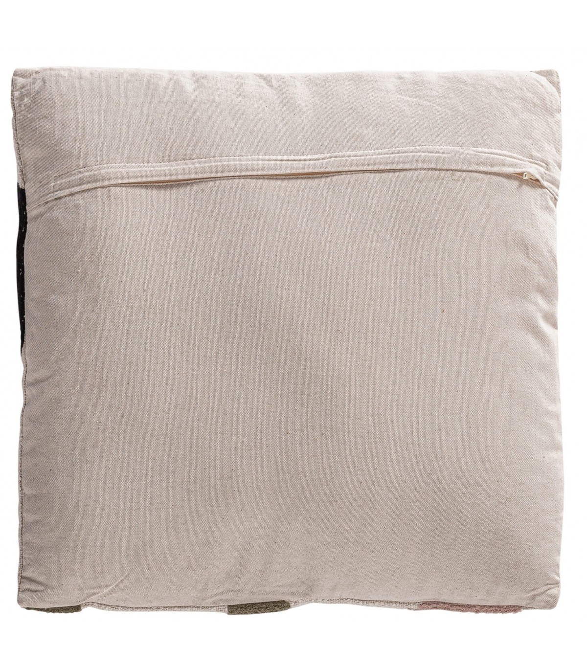 Cojín confeccionado en poliéster multi color y algodón beige, de tacto muy agradable y todas las costuras sobre hiladas con lo que evita que se abran las costuras y se enganche la cremallera, ideal para cualquier tipo de ambiente.