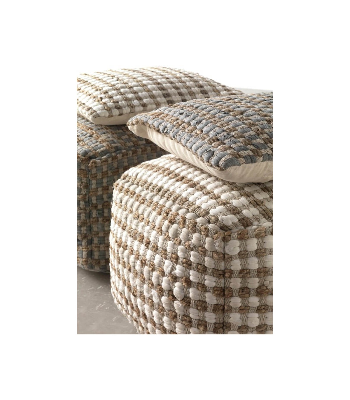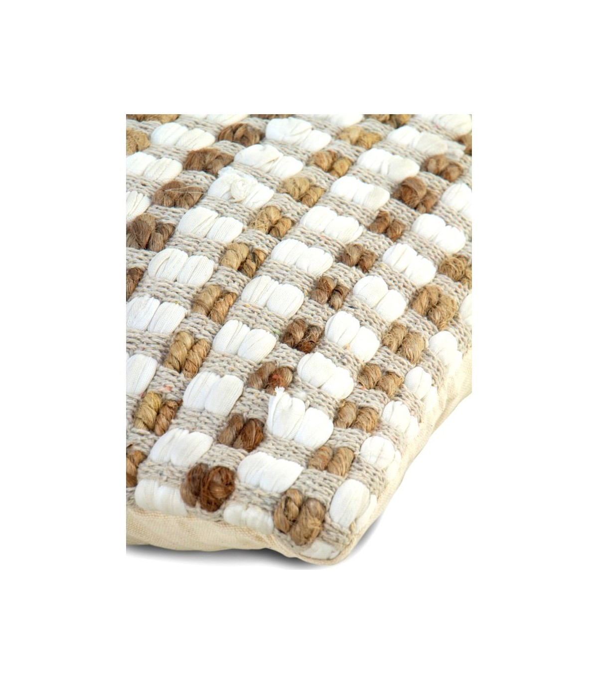 Cojín de gran calidad, tejido a mano en algodón y yute con tacto agradable y todas las costuras sobre hiladas con lo que evita que se enganche con la cremallera, ideal para ambientes de cualquier estilo.