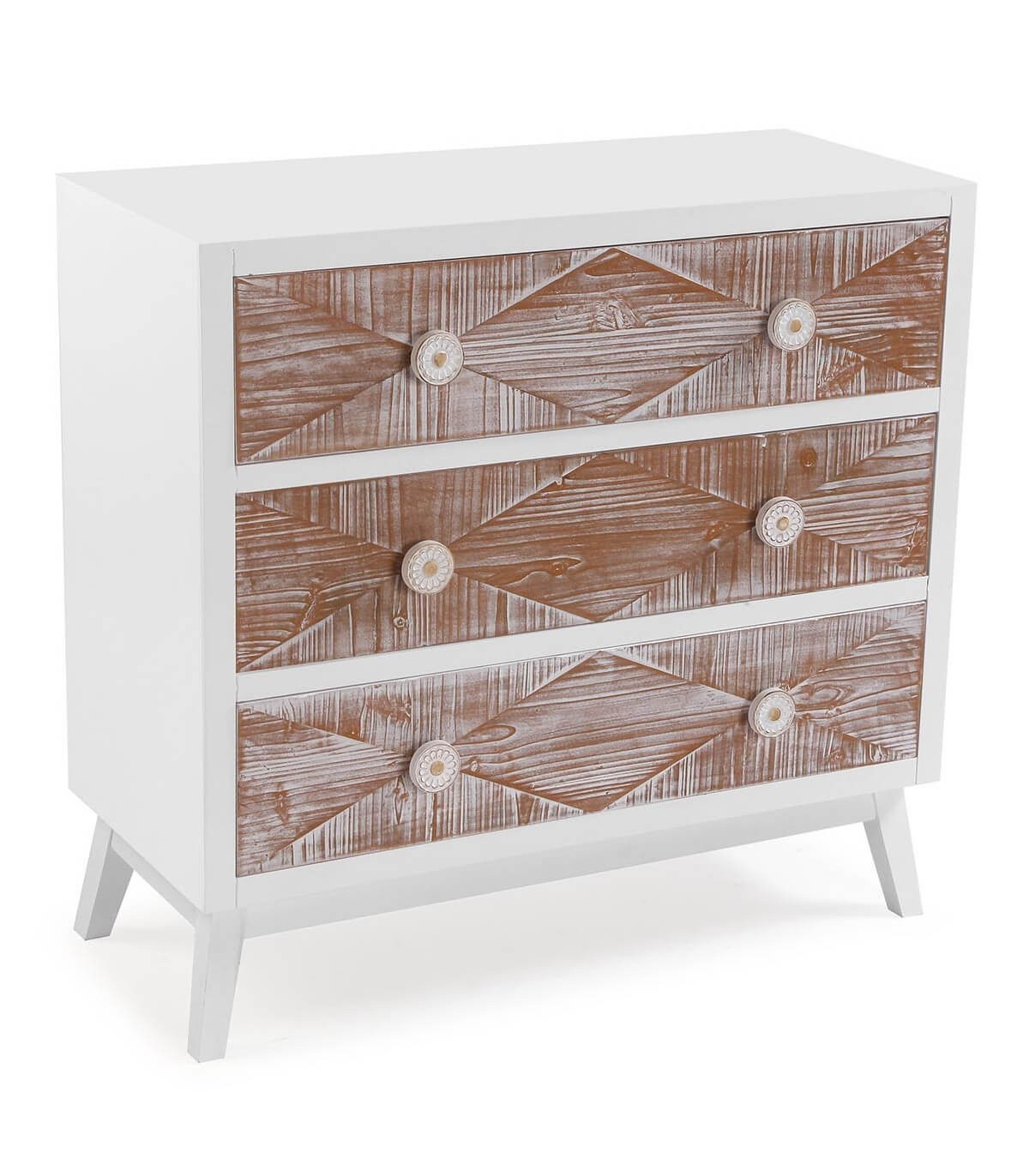 COMODA 80 X 34 SIRA MADERA BLANCA Y NATURAL LAVADA EN BLANCO