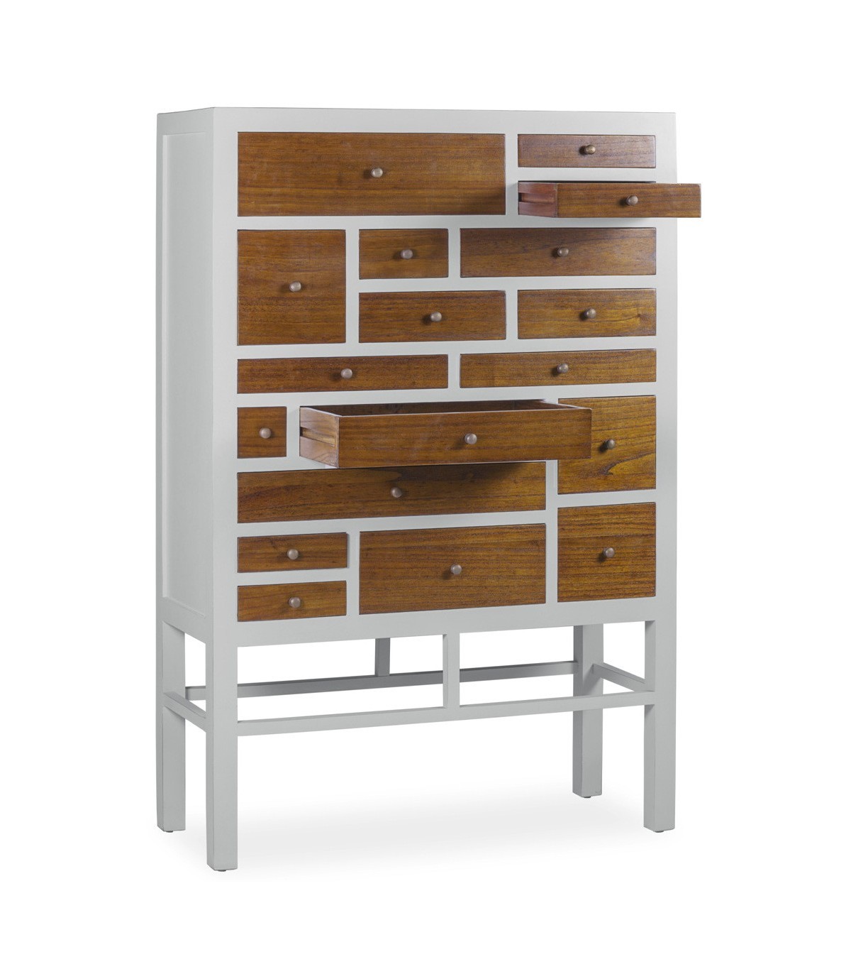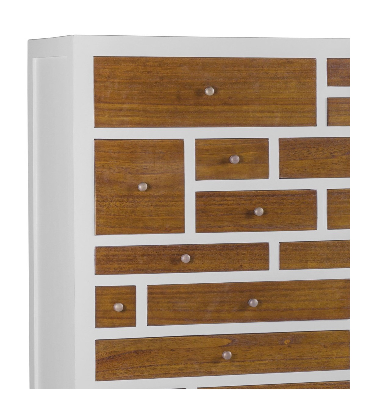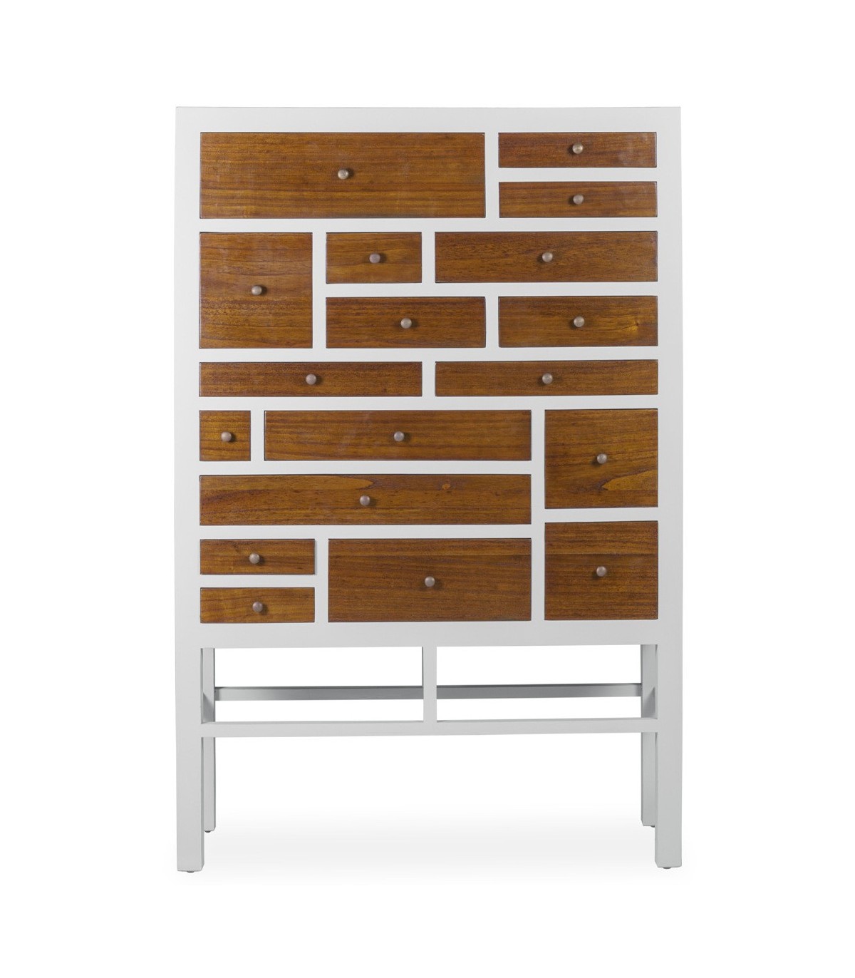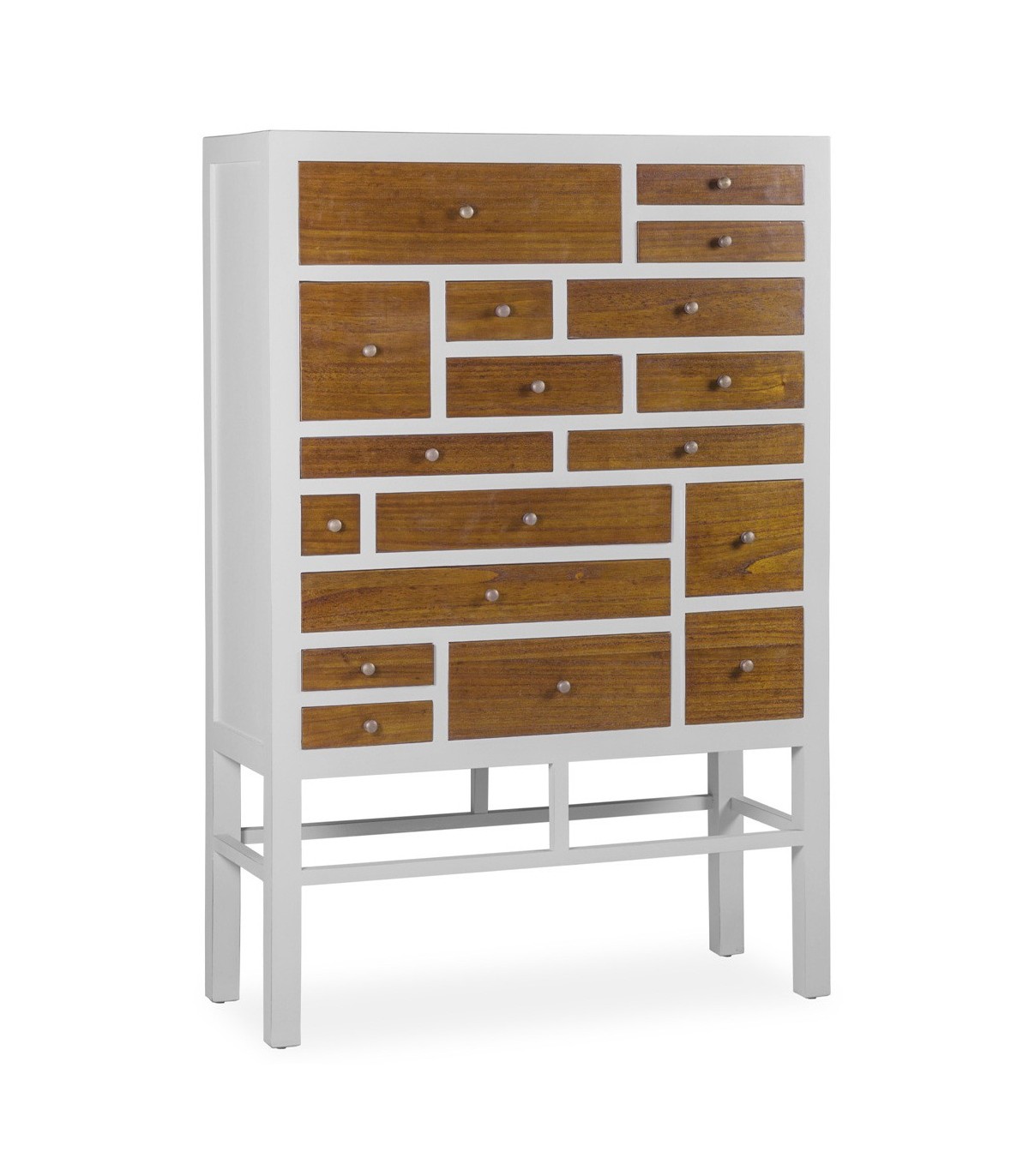 Cómoda de 18 cajones acabada en madera de mindi y lacada en blanco, una cómoda de gran capacidad muy elegante.