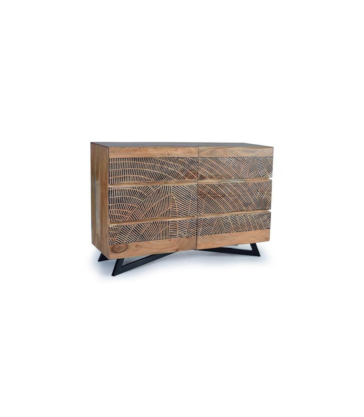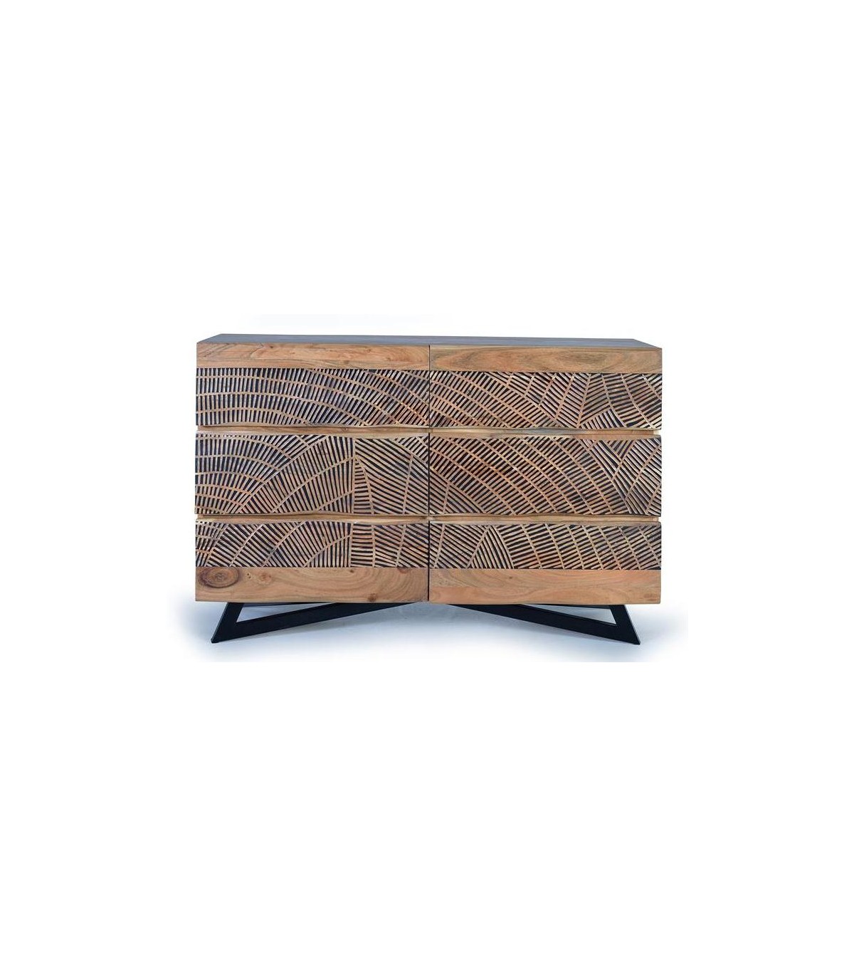 Comoda con seis cajones, de estilo industrial con un toque nórdico, perfecto equilibrio en sus materiales y acabados, una comoda elegante ideal para una buena entrada.