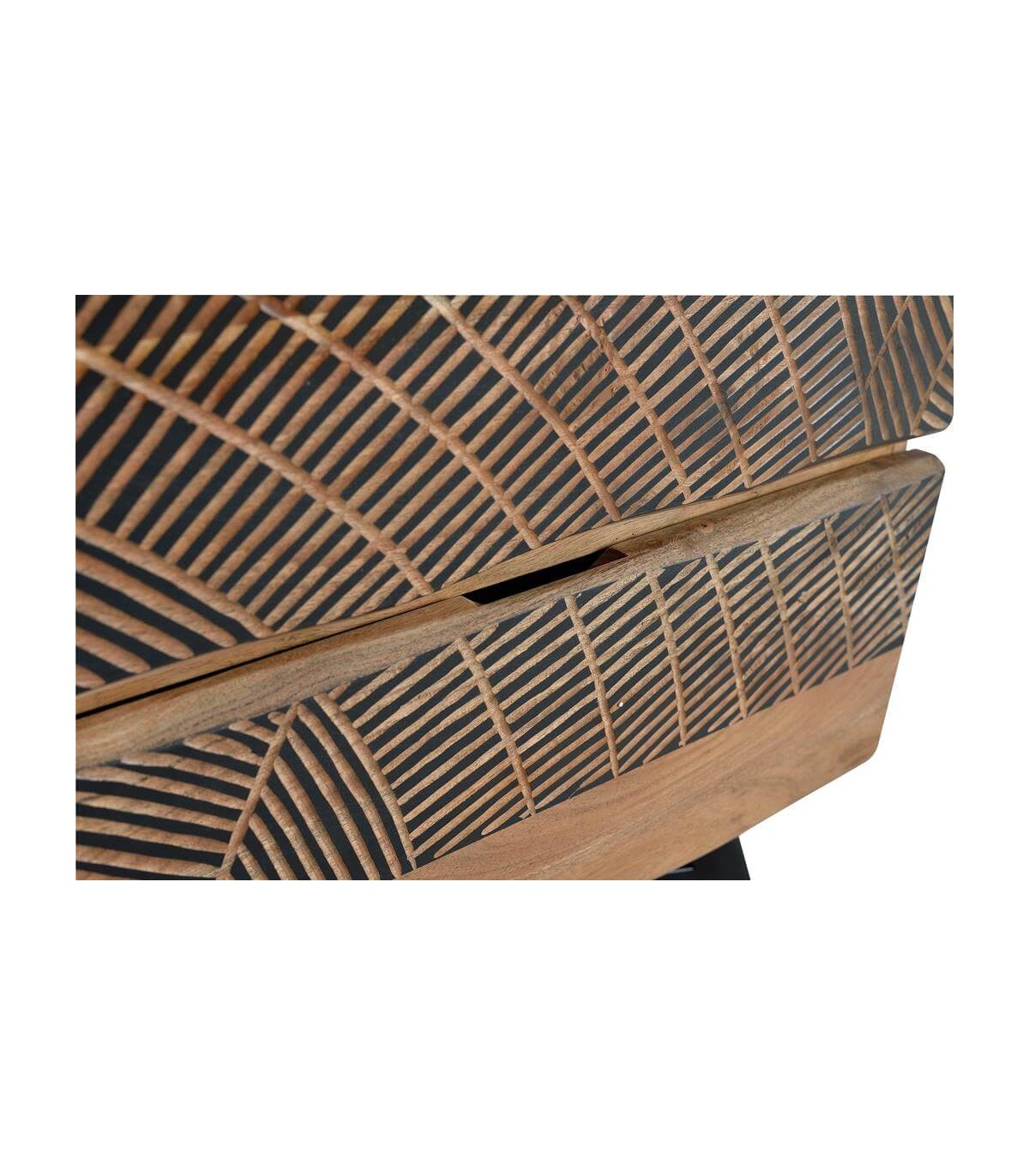 • Acabado, madera de acacia tallada y patas en metal negro.
