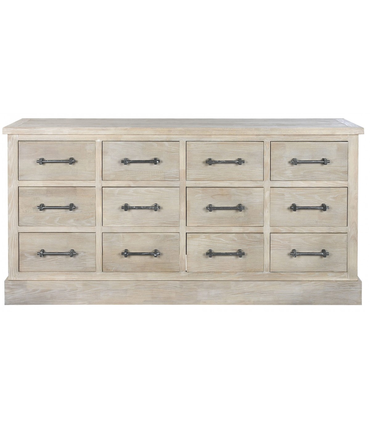 • Descubre la funcionalidad y estilo de esta imponente cómoda de 12 cajones, ideal para organizar con elegancia cualquier estancia. Su diseño contemporáneo con guiños industriales combina la calidez de la madera natural y la fuerza del metal patinado. Las vetas marcadas y los tiradores de hierro envejecido aportan carácter y presencia. Una pieza versátil para salones amplios, dormitorios modernos o espacios de trabajo con estilo.