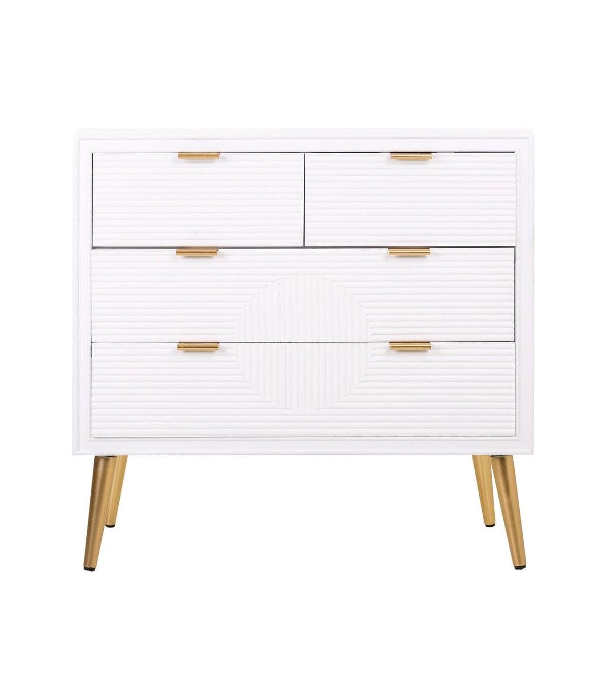 • Acabado, lacado en blanco, tiradores y patas en metal oro.