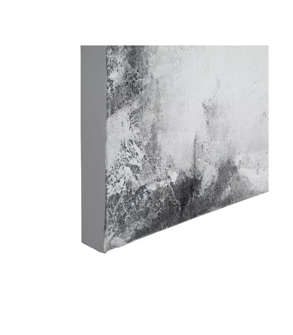 Cuadro rectangular pintado a mano sobre lienzo en bastidor de madera de pino con motivo abstracto, en tonos grises, un cuadro perfecto para una decoración industrial.