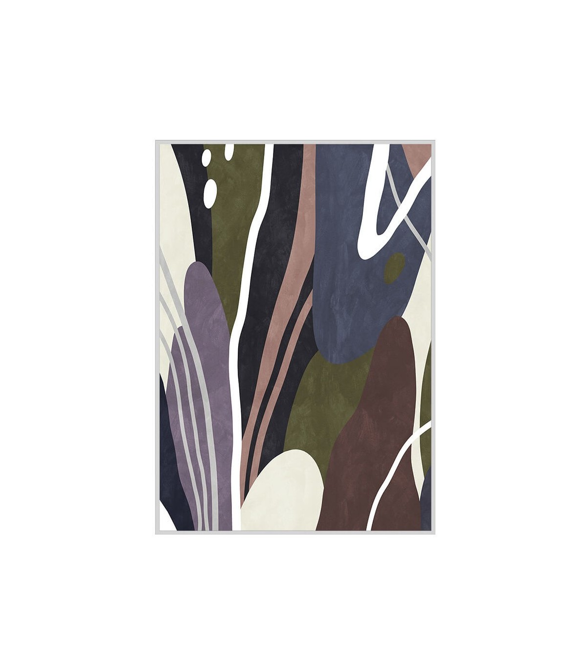 Bonito cuadro de temática abstracta muy marcada, realizado mediante la técnica de impresión, ideal para darle fuerza a una decoración en tonos atrevidos.
