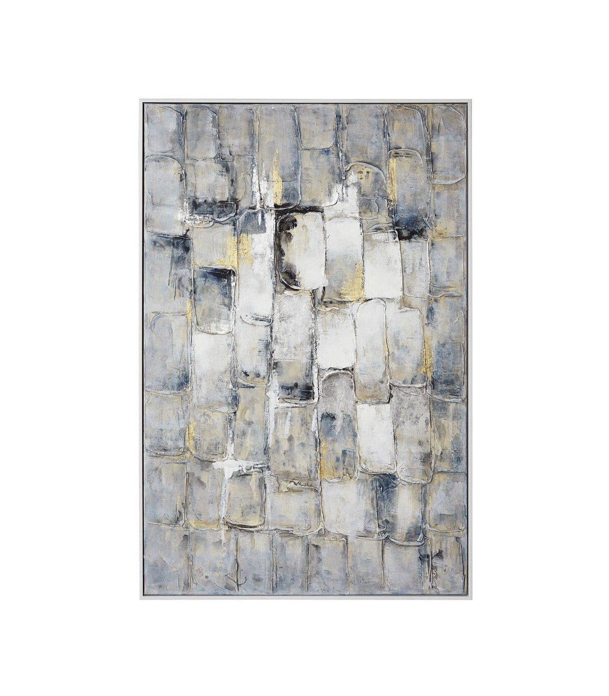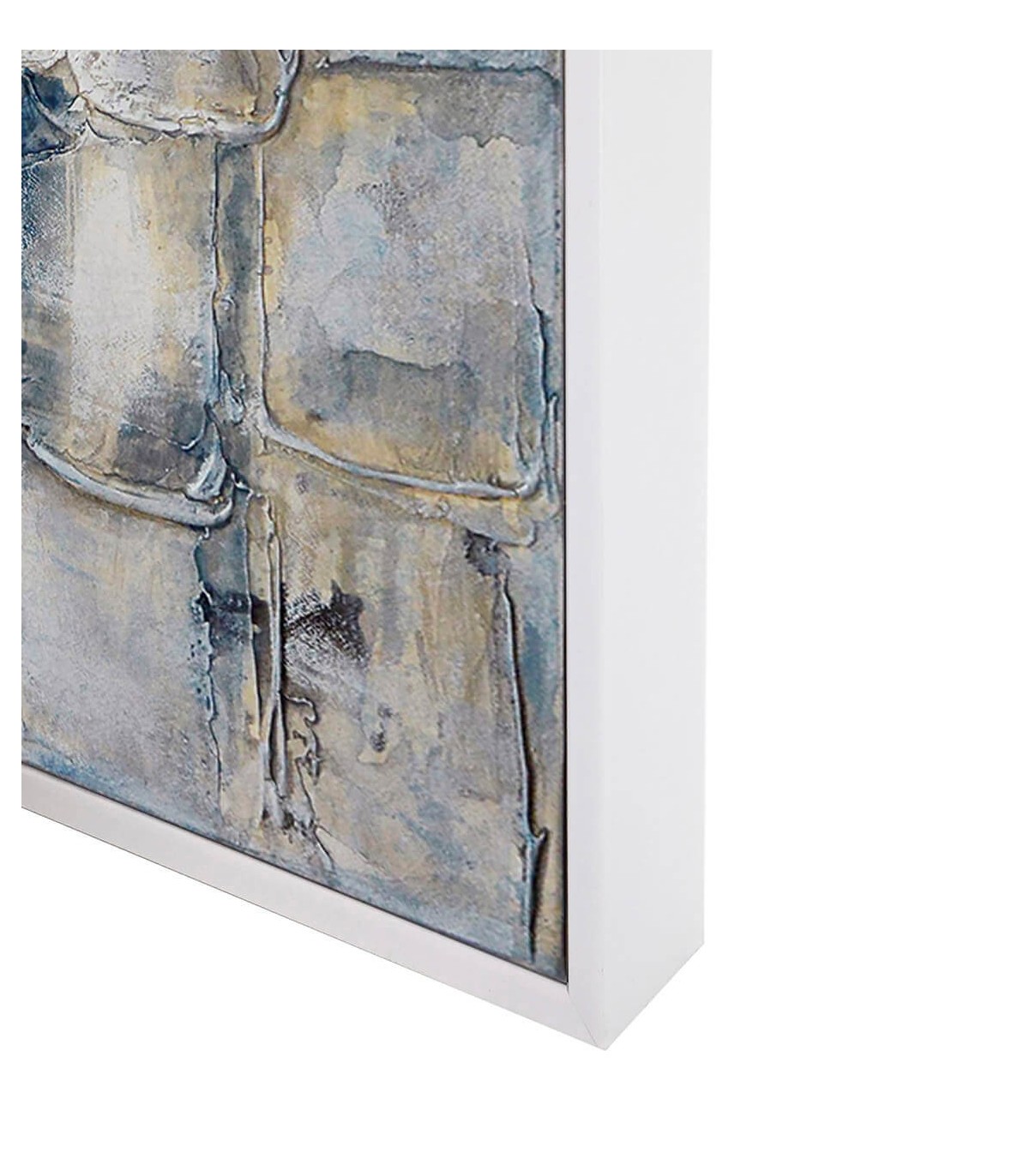 • Acabado, oleo pintado a mano, texturas, marco blanco.