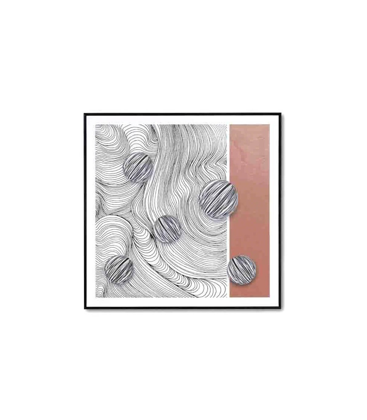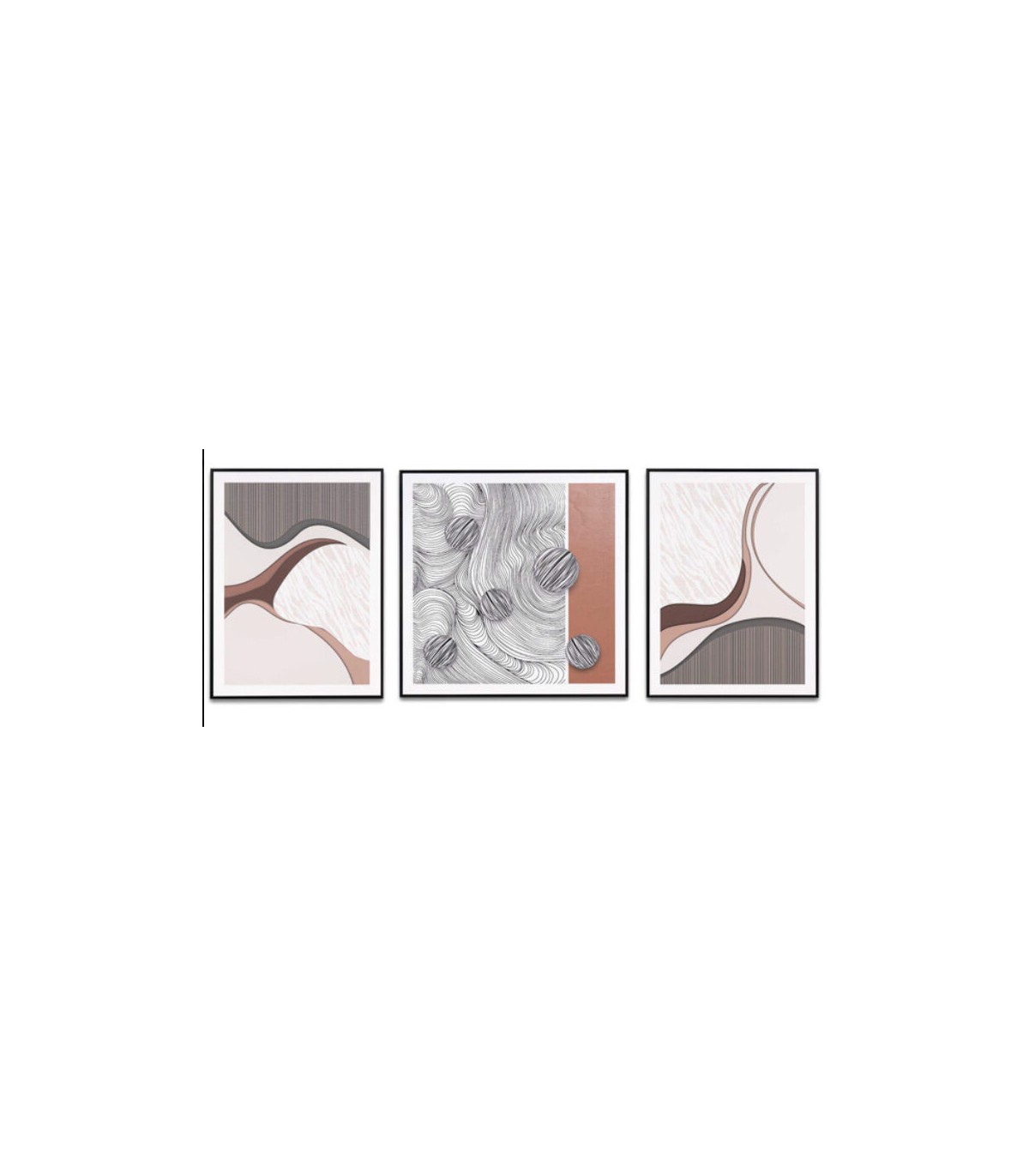Cuadro, lámina cuadrada estilo abstracto en tonos marrones enmarcada en polietileno negro, tiene 2 cuadros similares para hacer composiciones, un conjunto de cuadros con carácter.