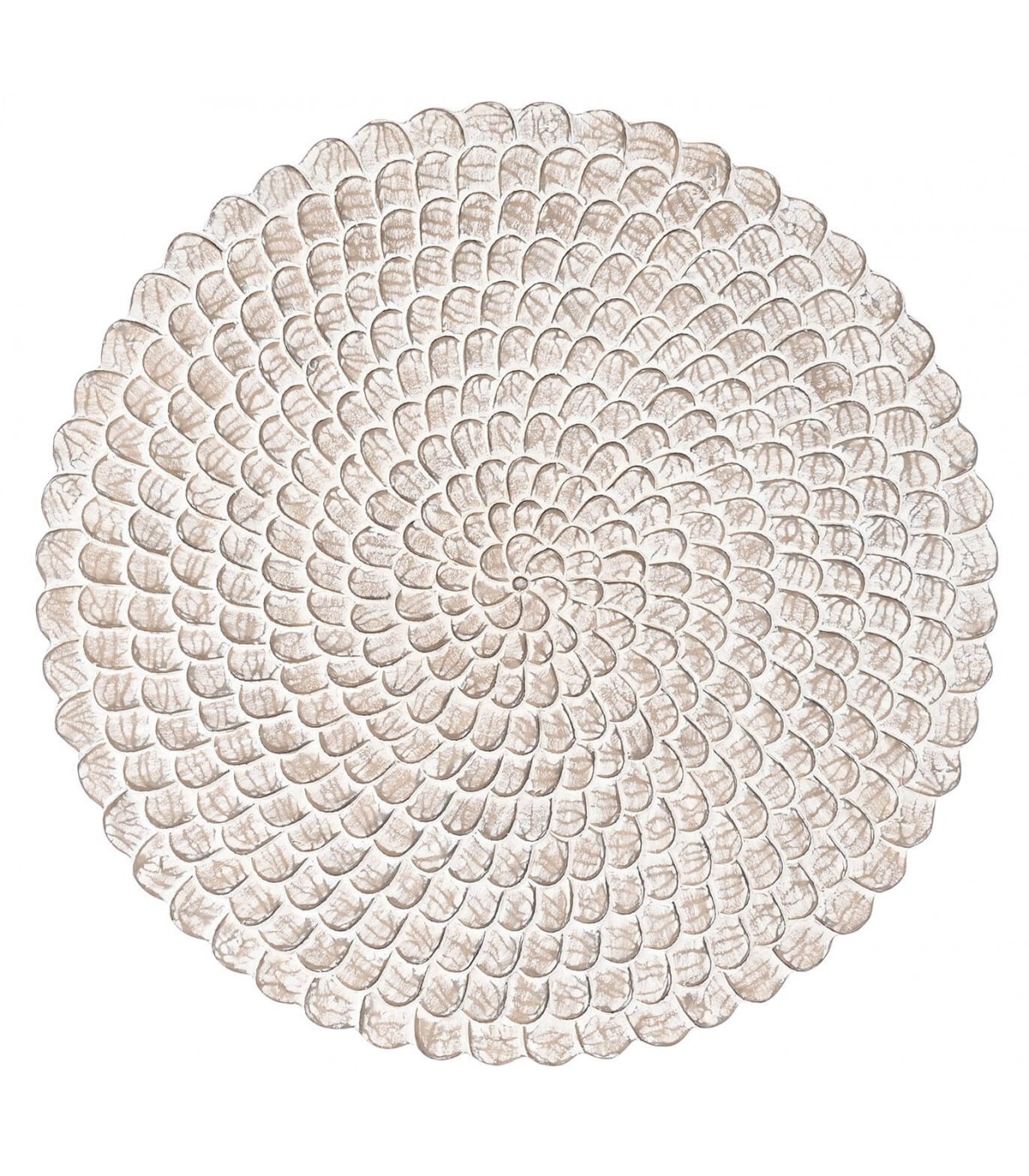 Cuadro decoración de pared realizado en mdf tallado acabado blanco decapado, grande y redondo de estilo étnico, una decoración de pared ideal para complementar cualquier estilo de decoración.