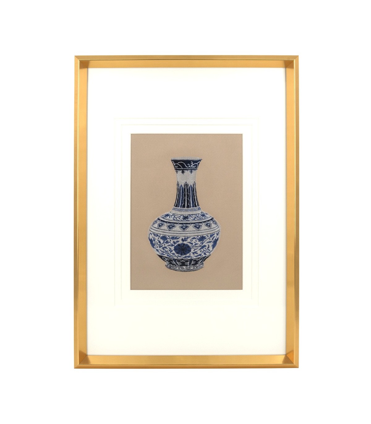 Cuadro de estilo oriental muy elegante, el jarrón está bordado y el marco bicolor en negro y oro le da un toque muy sofisticado.