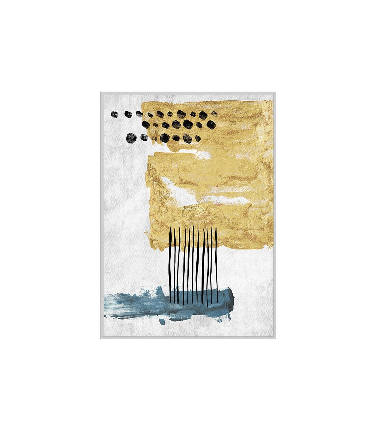 • Acabado, técnica mixta, con trazas en pan de oro, texturas, marco blanco.