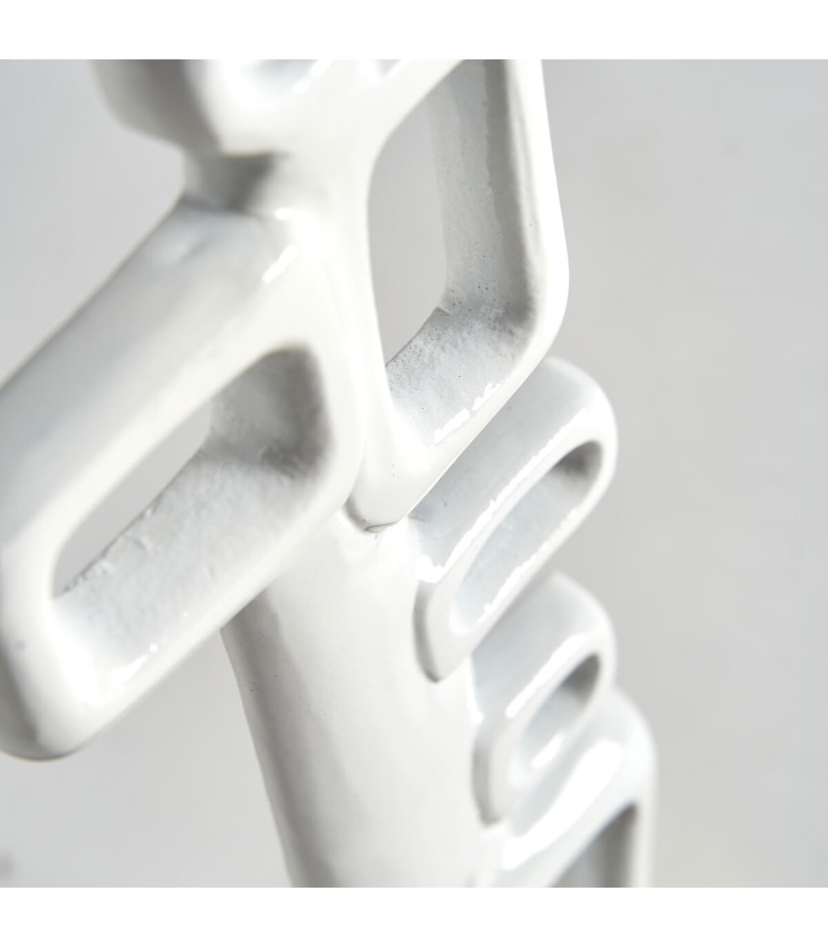 Fabricada en aluminio de alta calidad, esta figura es ligera pero resistente, asegurando una larga durabilidad. Su acabado en blanco y dorado realza sus formas elegantes, creando un efecto visual atractivo que encaja perfectamente en decoraciones clásicas, contemporáneas o incluso minimalistas con un toque de lujo.