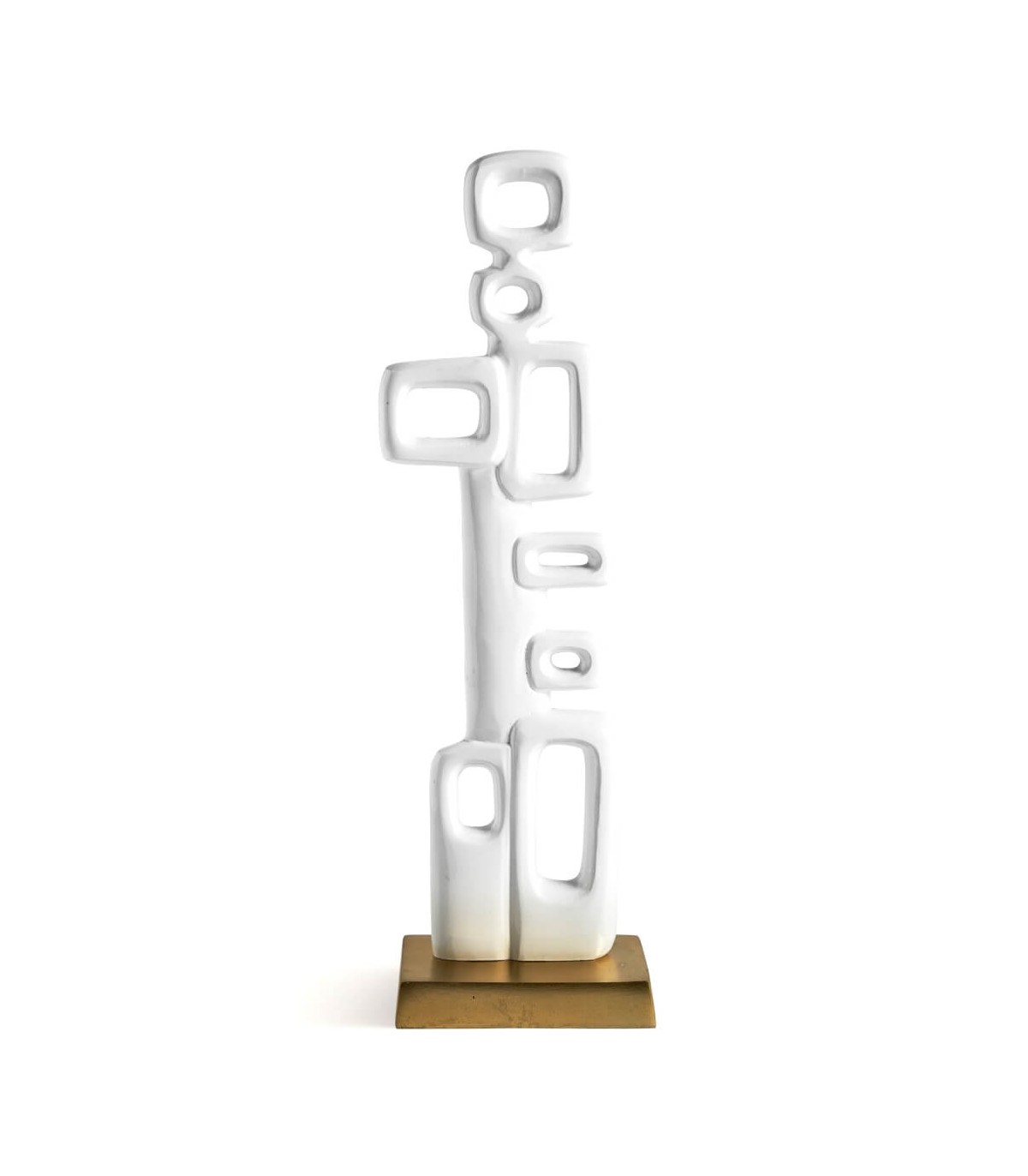 Figura Decorativa de Aluminio en Blanco y Oro – Estilo Art Decó Elegante