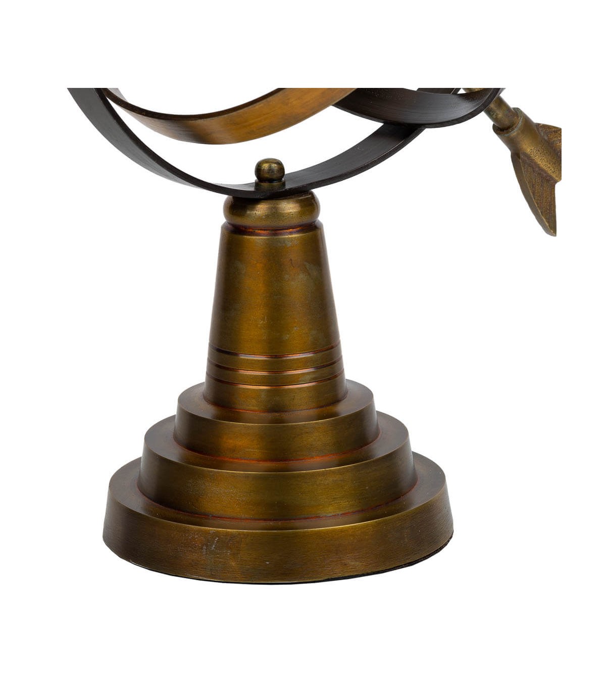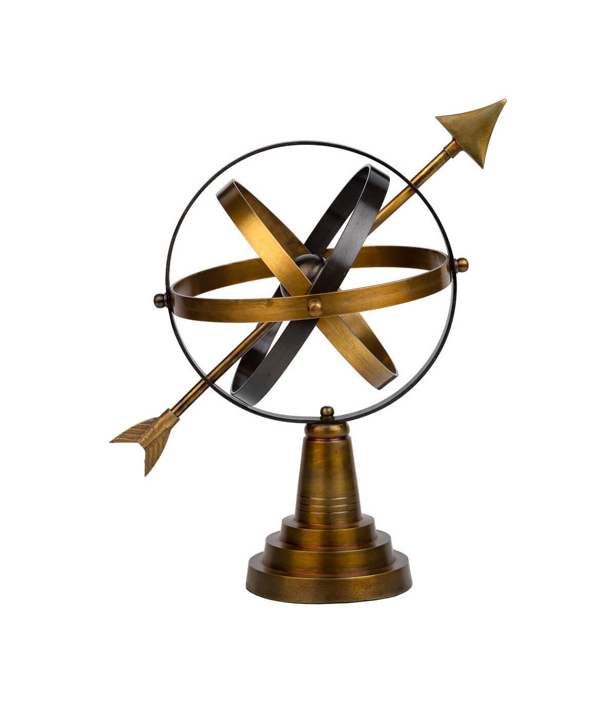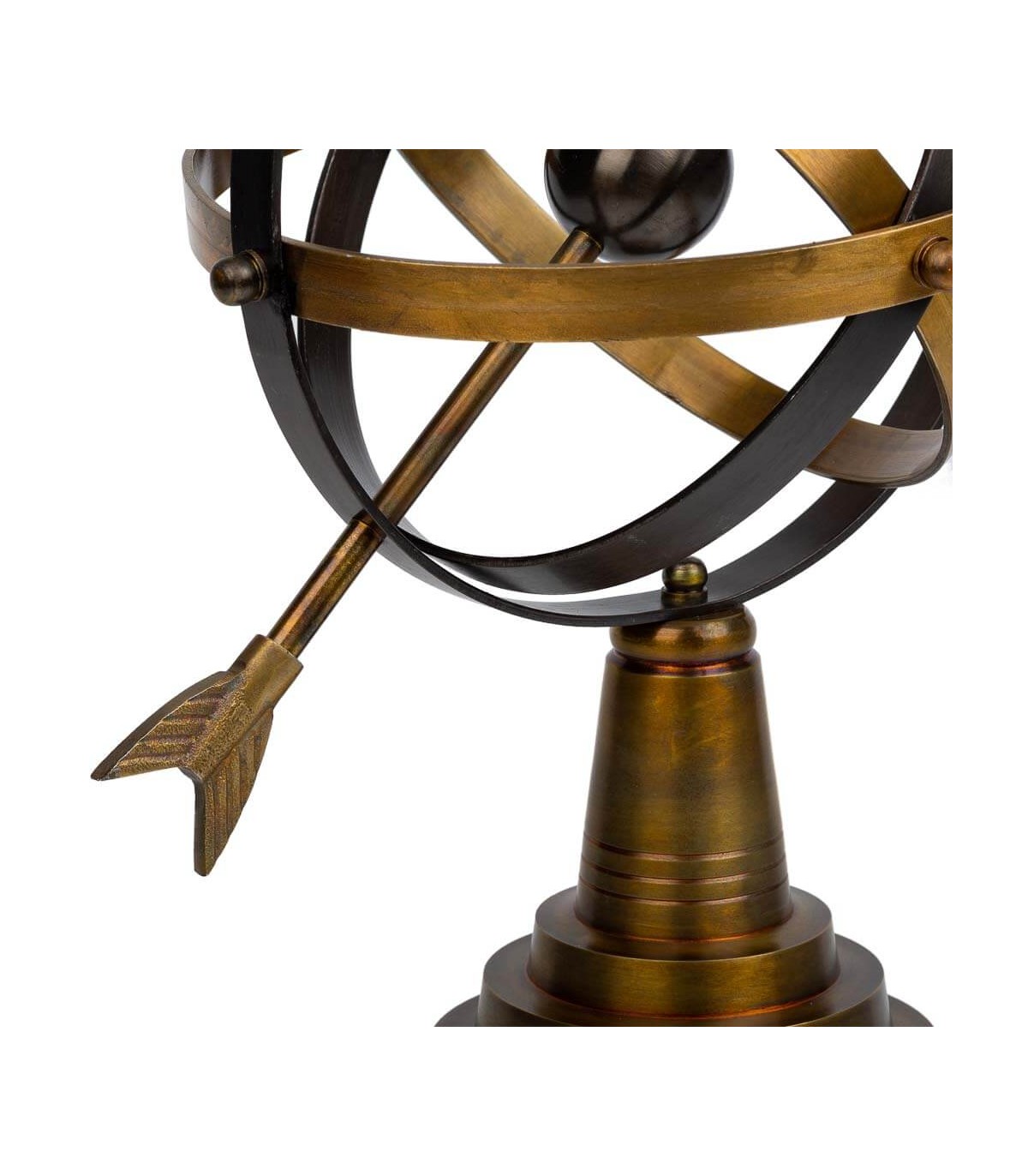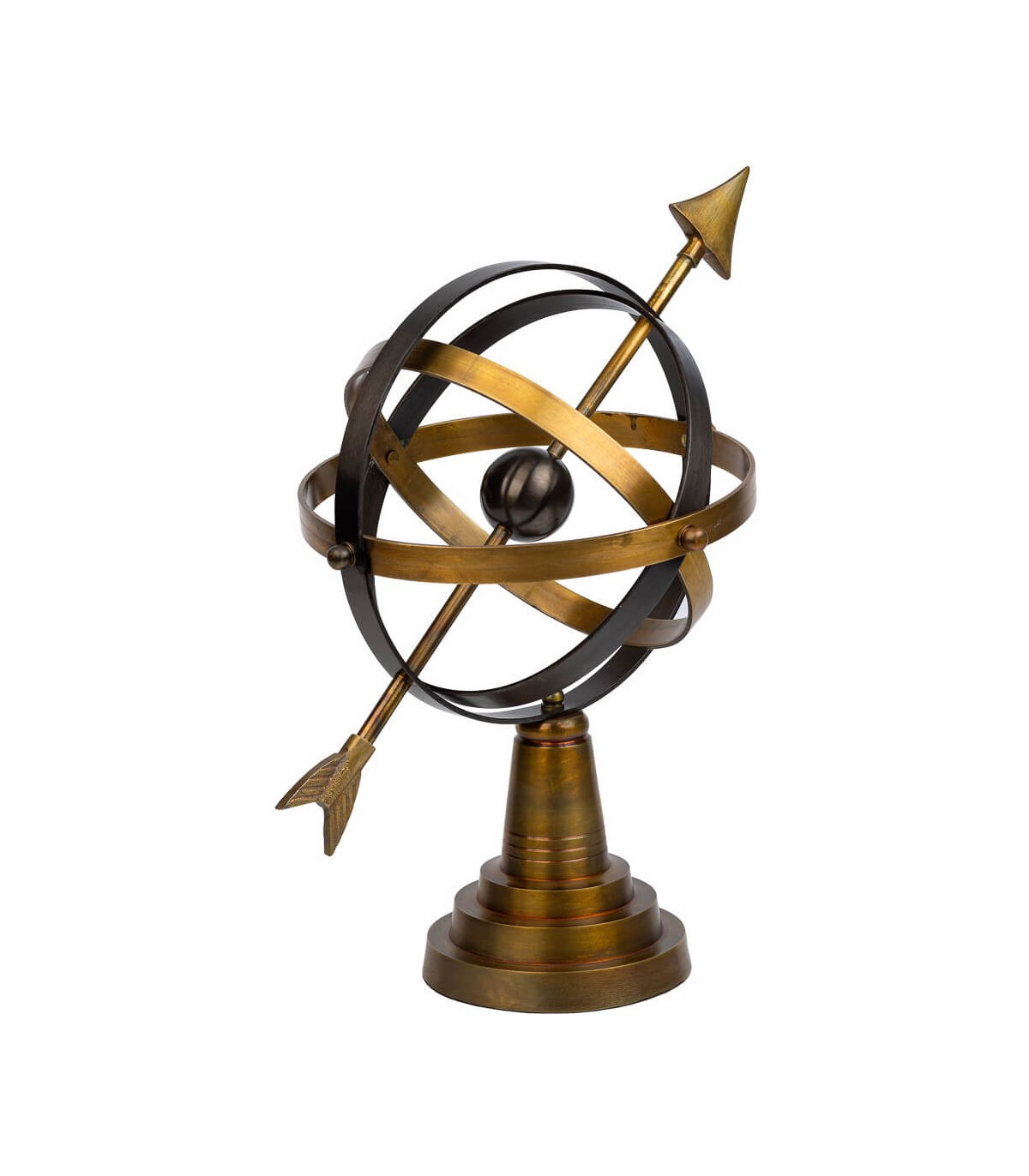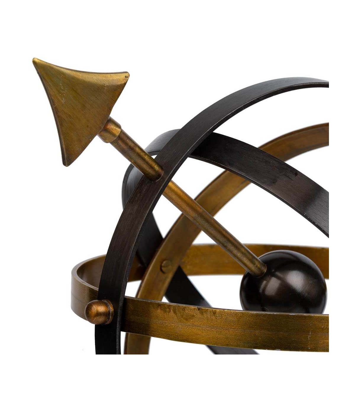 Dale un toque distinguido a cualquier rincón con esta figura decorativa inspirada en los antiguos astrolabios. Fabricada íntegramente en metal, combina aros cruzados en dorado envejecido y negro con una flecha central que potencia su elegancia. Perfecta para entradas, estanterías o escritorios, esta pieza clásica evoca el encanto del pasado con un diseño esférico que llama la atención.