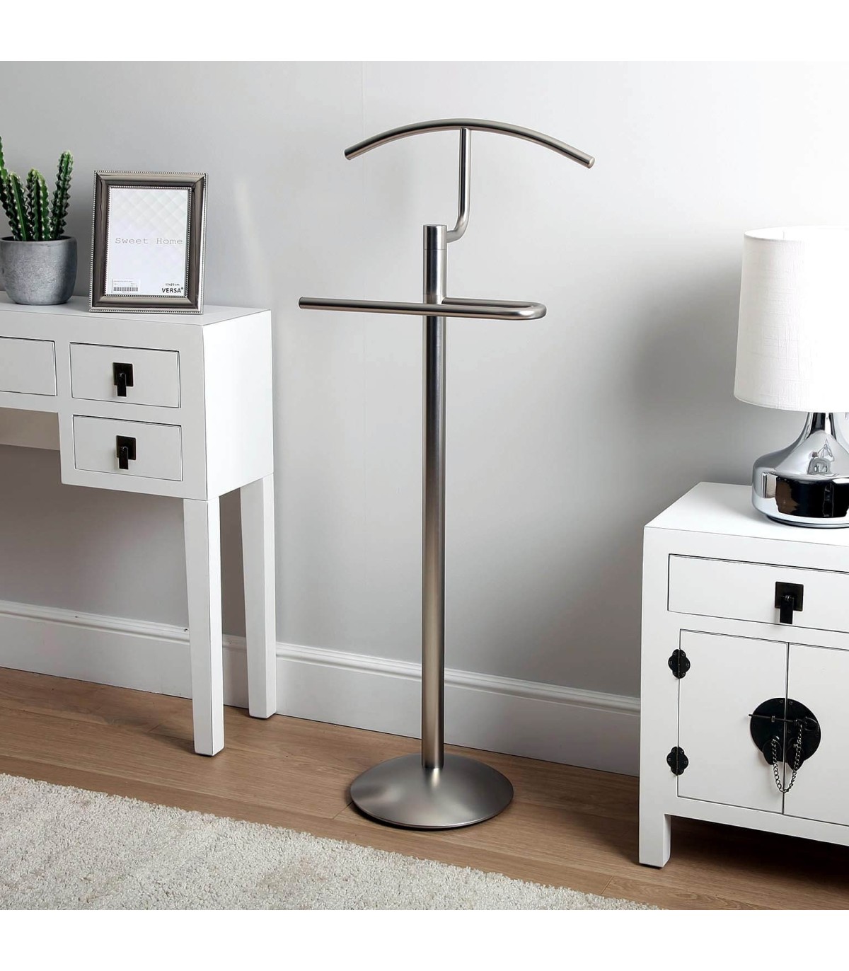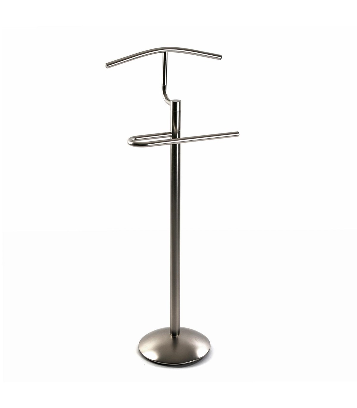 Añade un toque de orden y sofisticación a tu dormitorio con este galán de noche en metal cromado, una pieza elegante y resistente diseñada para facilitar tu día a día. Su estructura estable permite colgar chaquetas, camisas y pantalones sin que se arruguen, manteniéndolos siempre listos para usar.