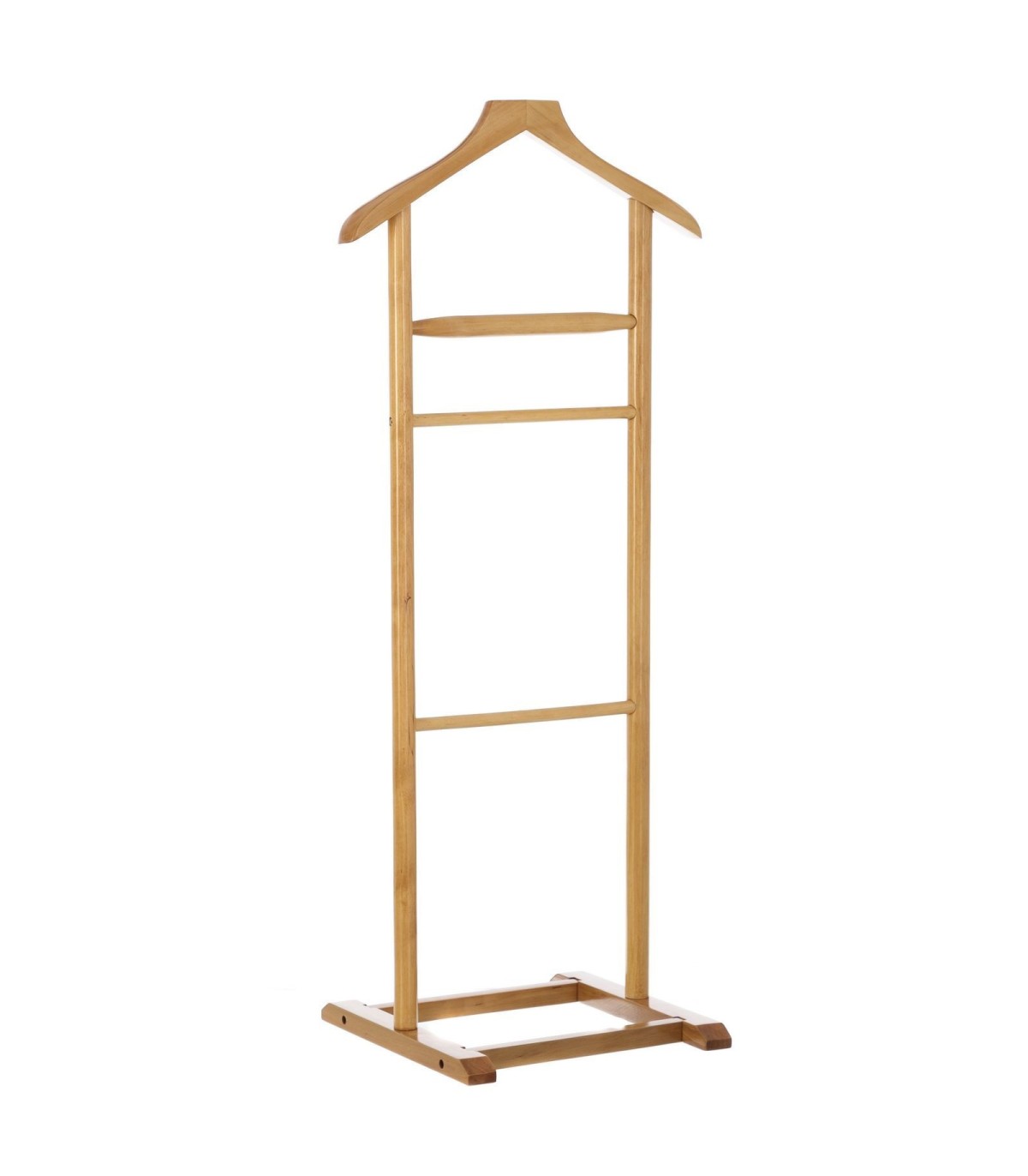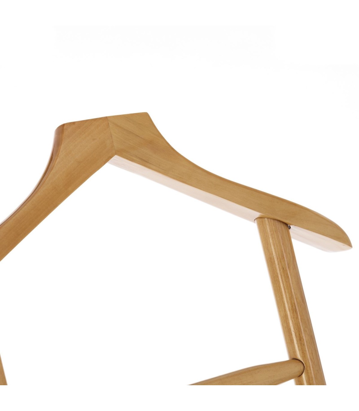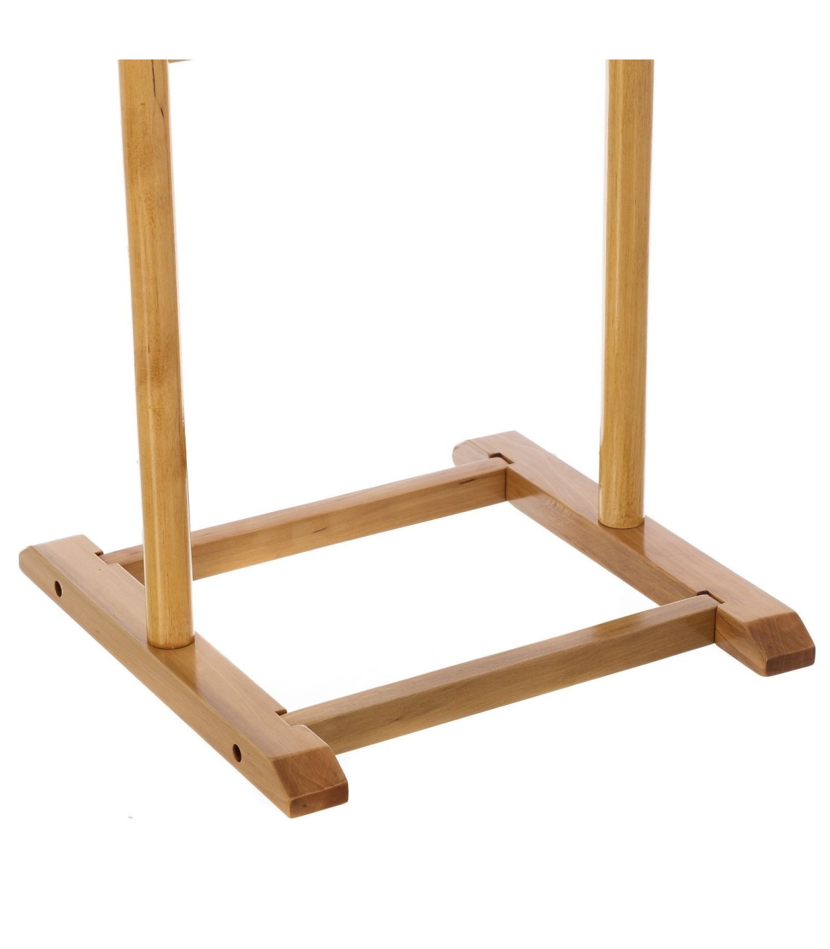 Funcional y con un diseño elegante, este galán de noche aporta orden y estilo al dormitorio o vestidor. Su estructura alta permite colgar chaquetas, camisas y pantalones sin arrugas, mientras que la repisa superior añade un toque práctico. El acabado natural resalta la belleza de la madera y encaja fácilmente en ambientes clásicos, rústicos o escandinavos.