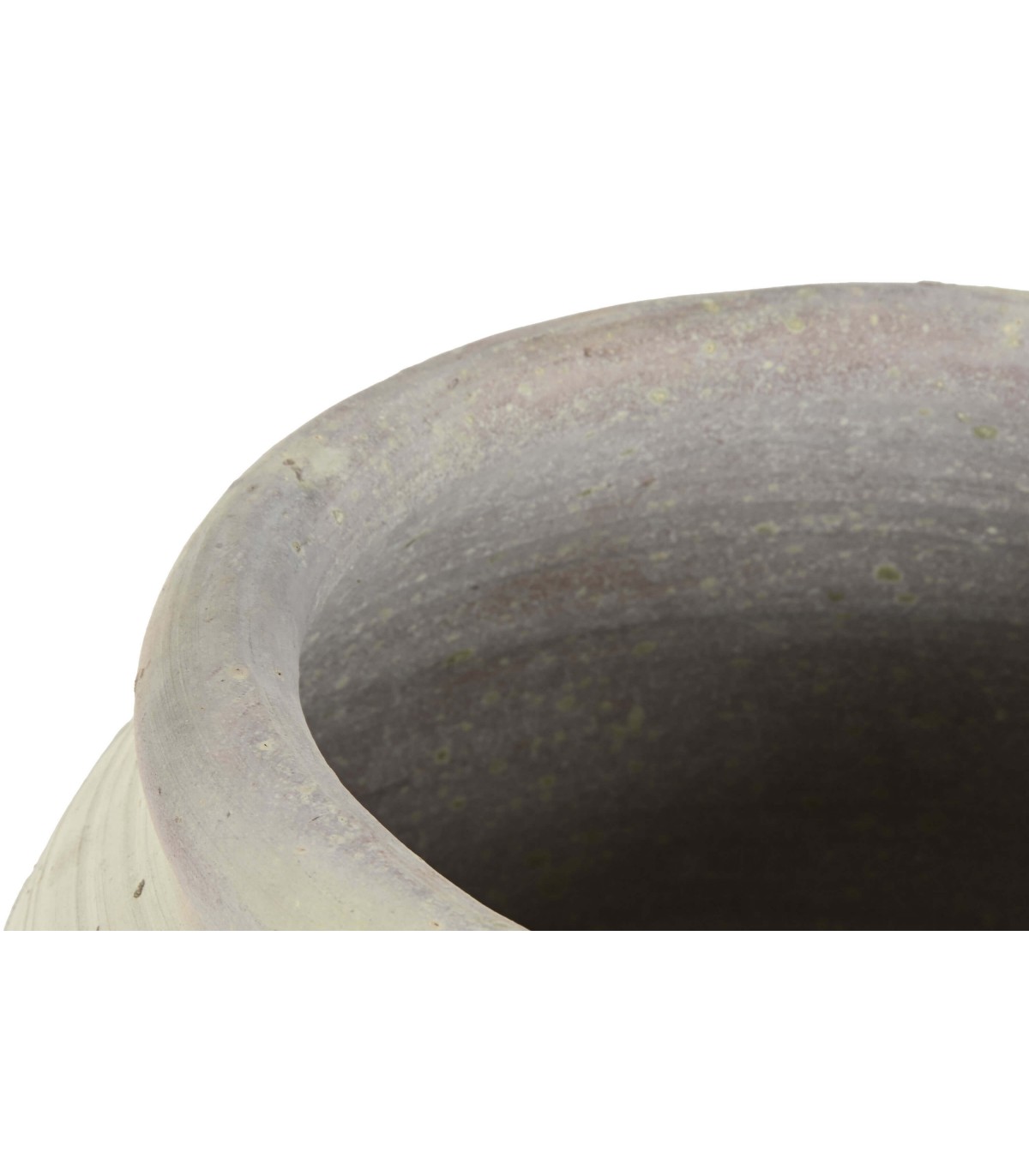 La forma clásica de vientre ancho, cuello estrecho y decoración en relieve aporta encanto tradicional y autenticidad. Perfecta para ambientes boho, ibicencos o de estilo wabi-sabi, aporta textura y volumen tanto en interior como exterior resguardado. Ideal para colocar en el suelo con ramas secas o flores preservadas.