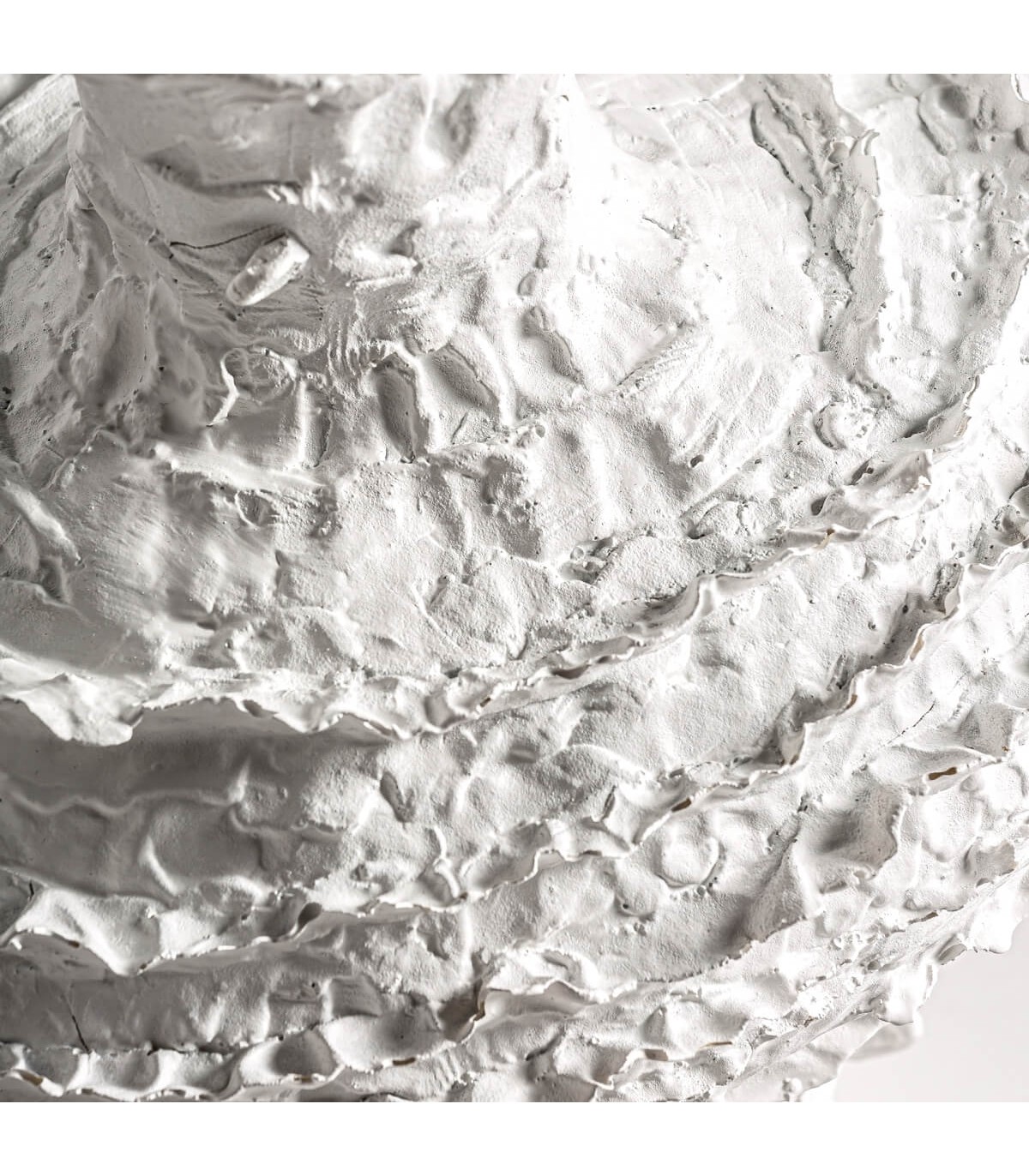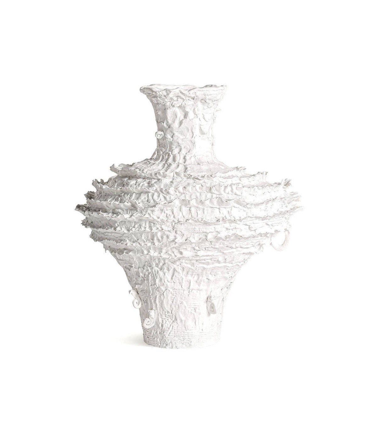 Jarrón de estilo contemporáneo, realizado artesanalmente en resina de color blanco de formas irregulares, para muebles de tamaño medio, o grande, tipo aparadores, cómodas, o directamente en el suelo.