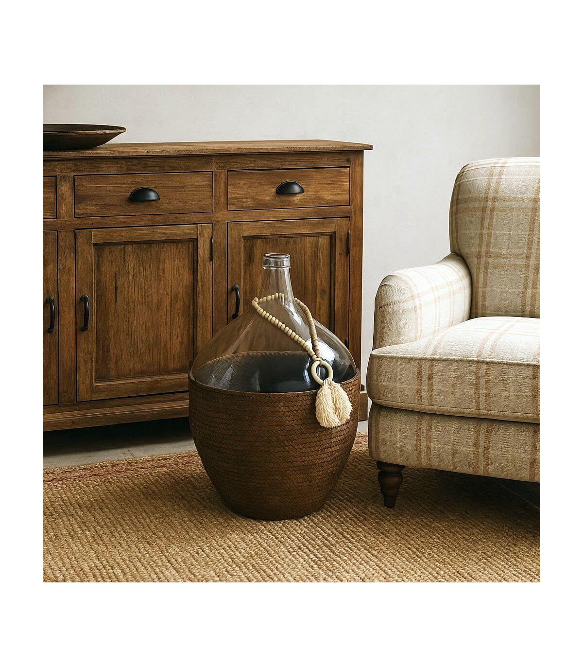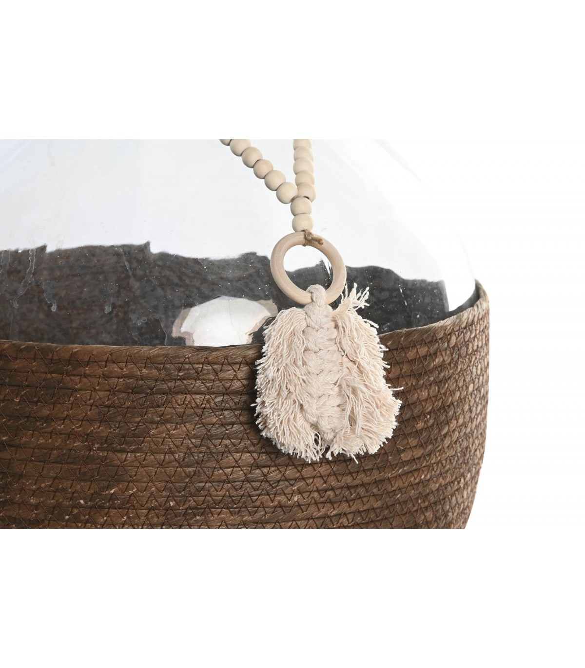🎨 Acabado: cristal transparente, fibra natural trenzada a mano teñida color nogal, detalle decorativo en natural