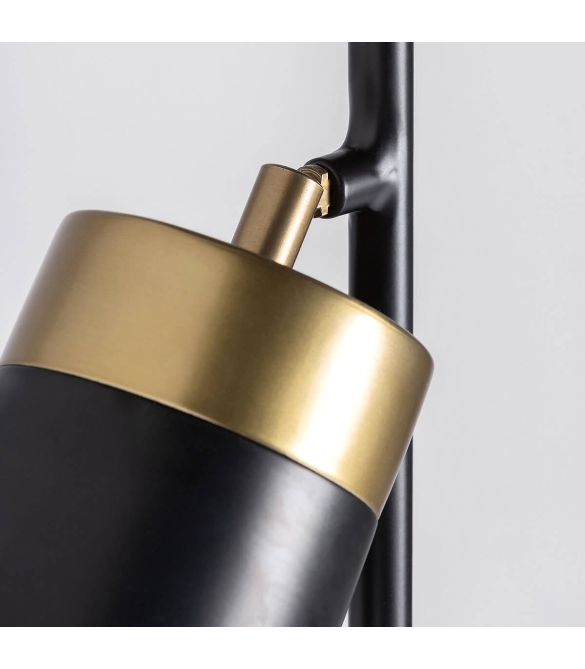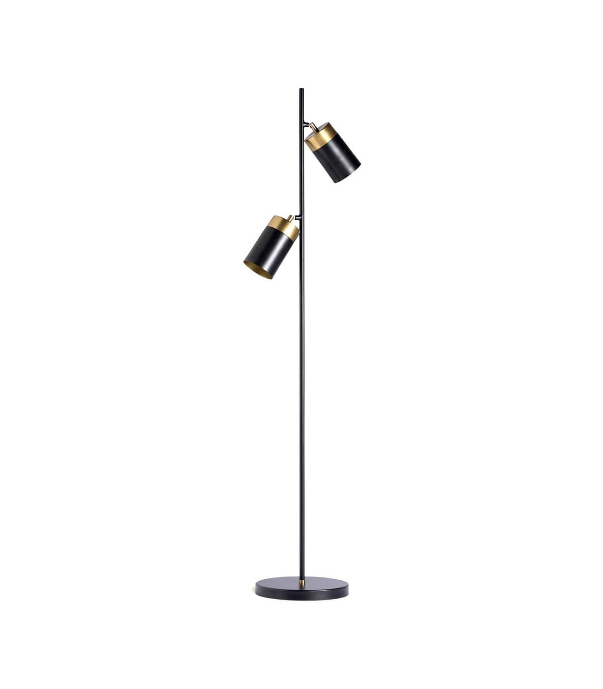 Lámpara de pie, con 2 focos orientables, realizada en metal negro y oro, una lámpara perfecta para crear distintos ambientes con sus focos orientables.