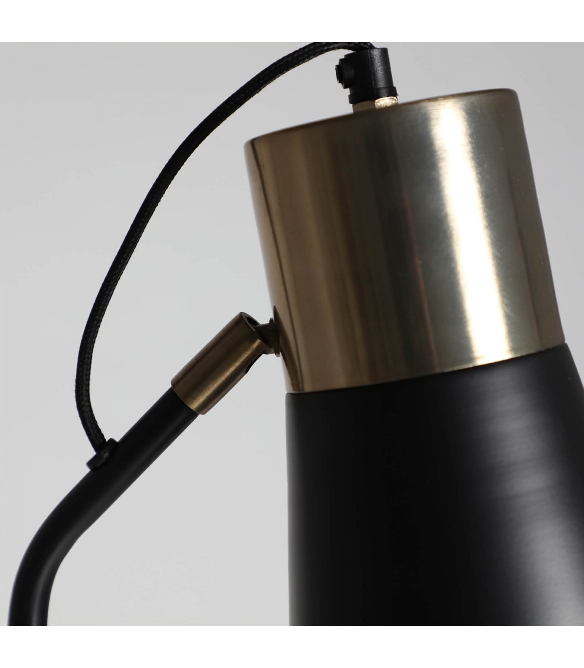 - Acabado, base blanca, fuste y pantalla negros con detalles en oro viejo.