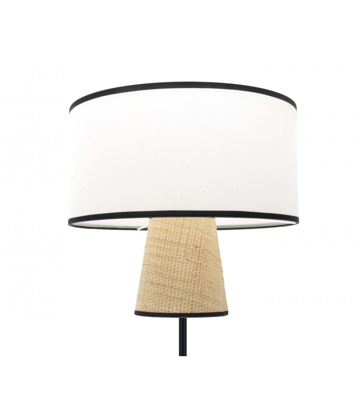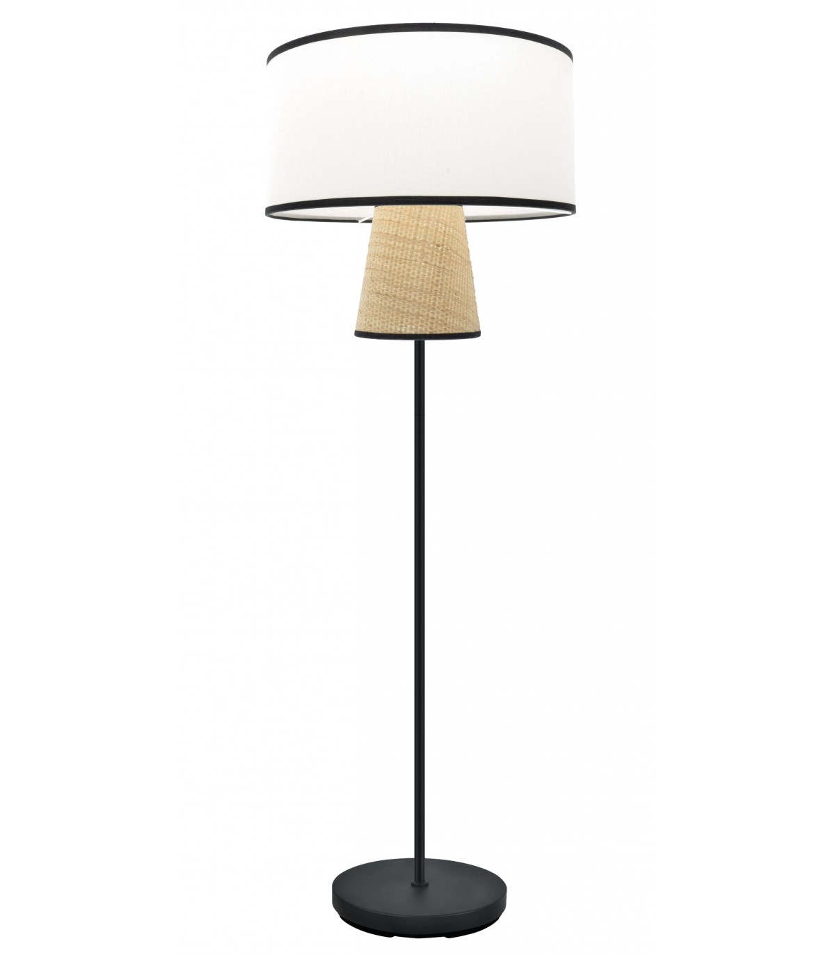 LAMPARA DE PIE 40 Ø X 189 BOYA METAL NEGRO TEXTIL BLANCO Y CAÑIZO