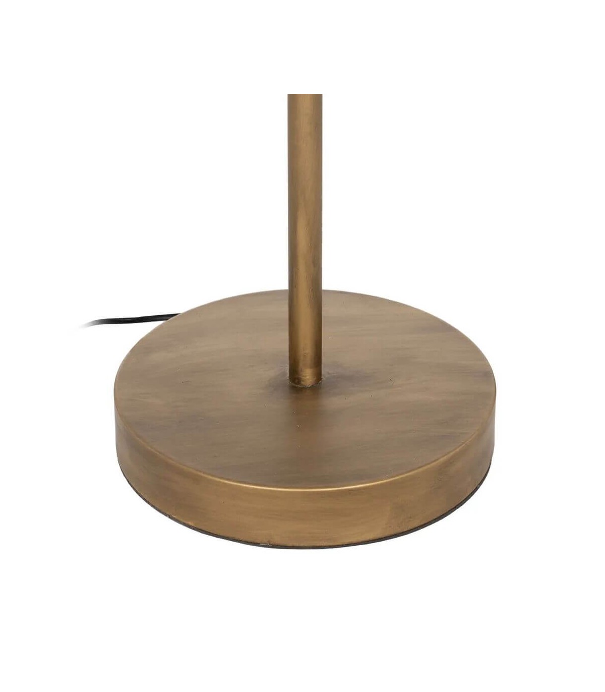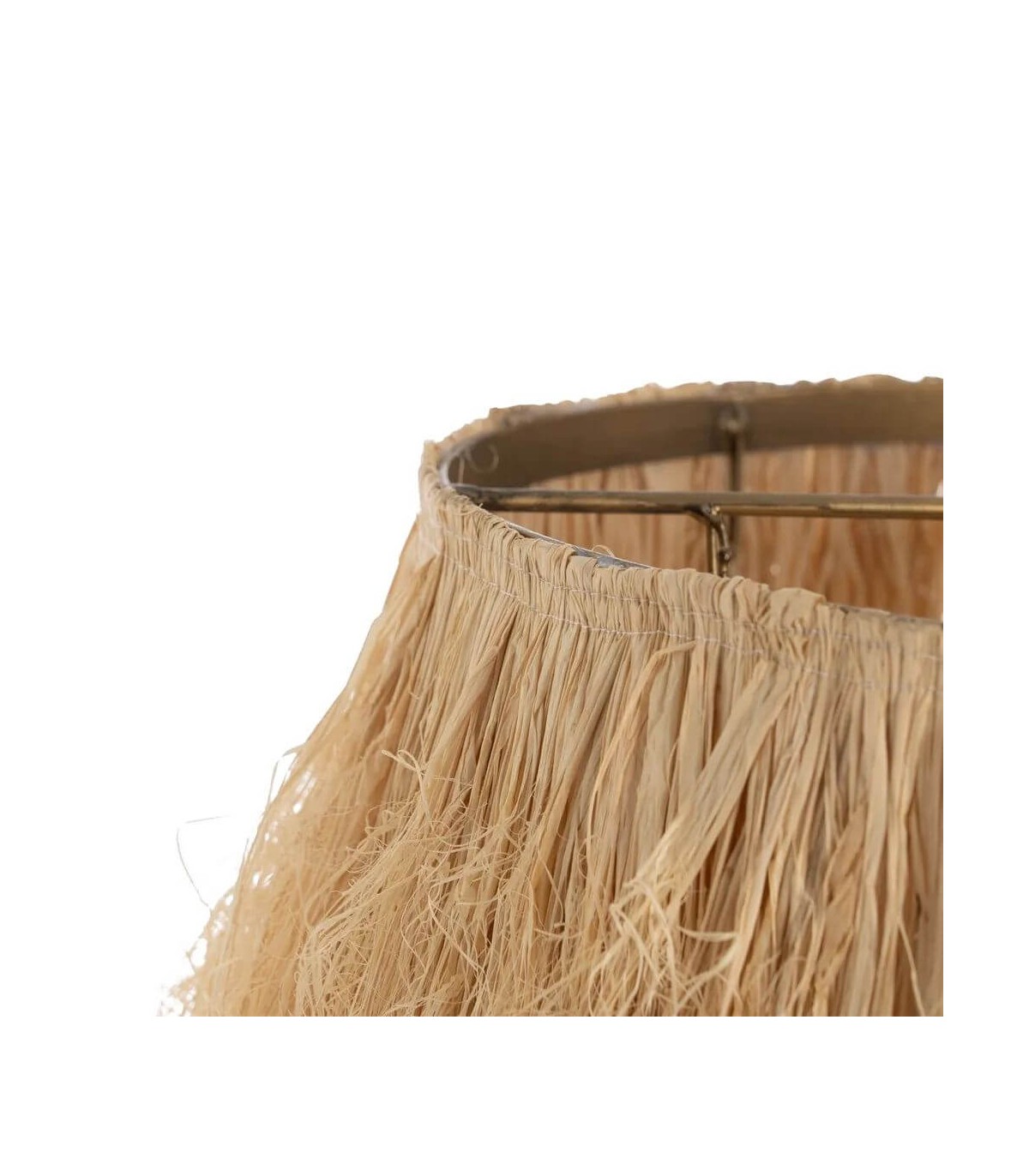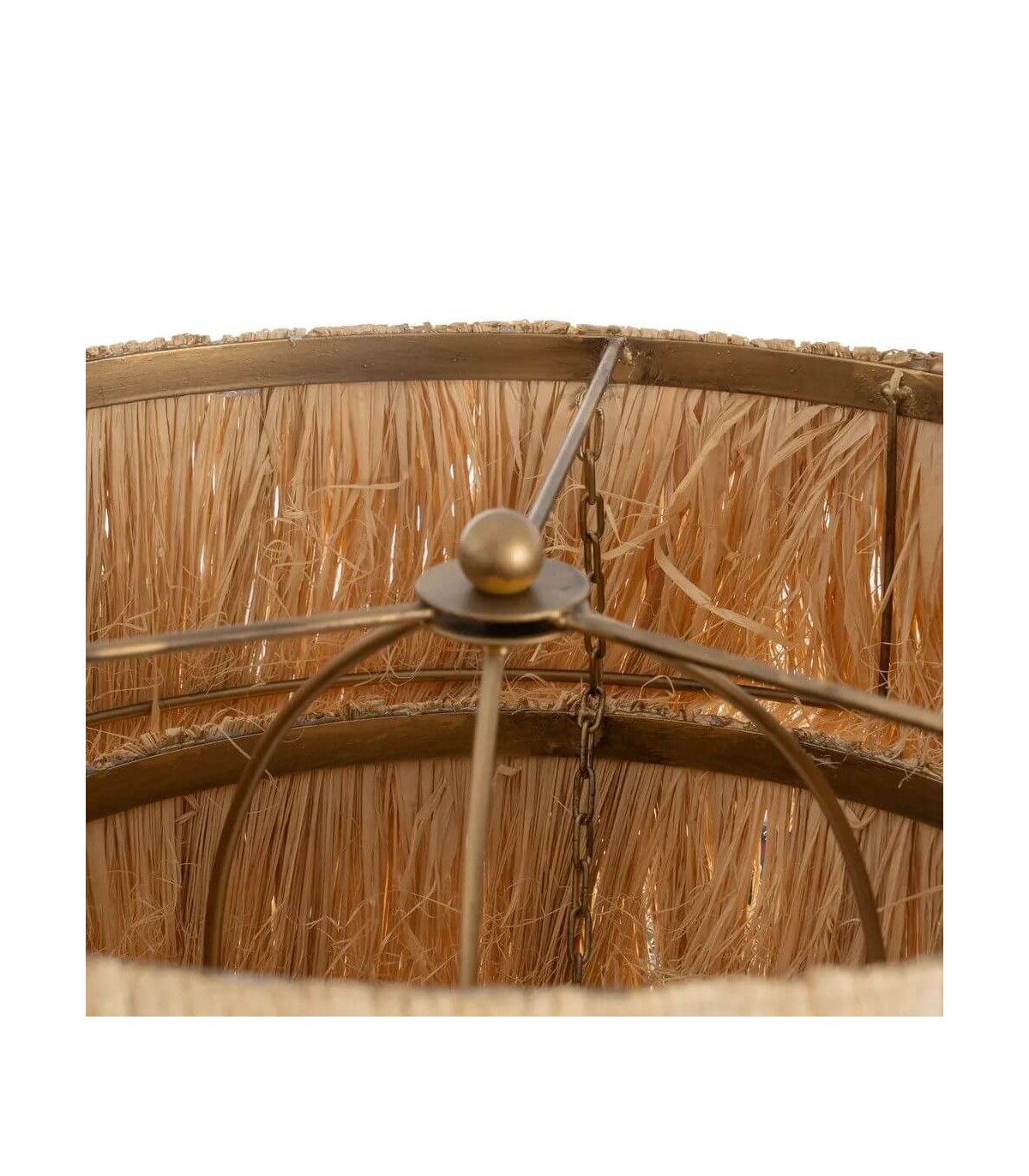 Acabado, metal oro viejo, pantalla de rafia artesanal.