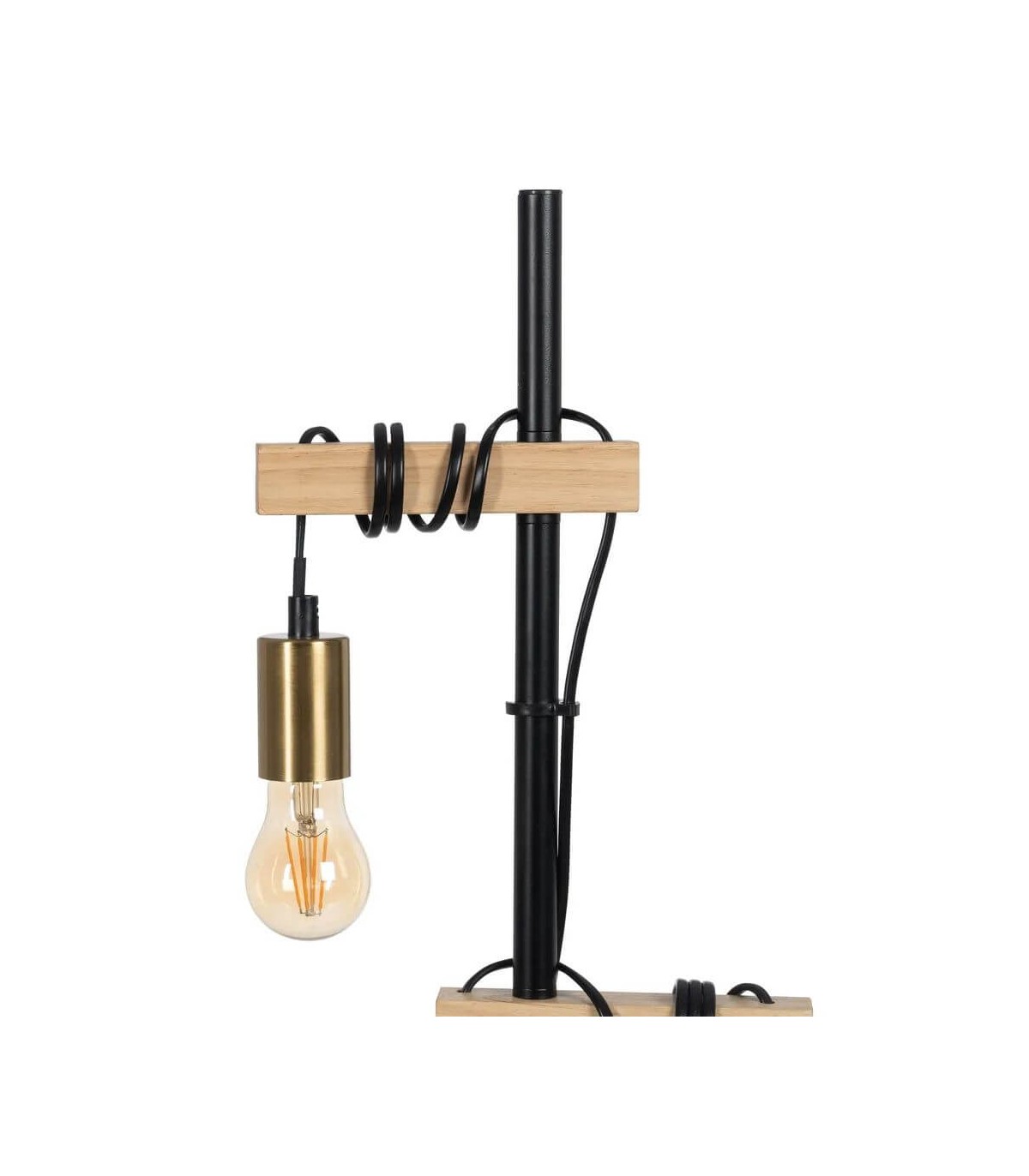 • Acabado, metal negro con los detalles de los cubre casquillos en oro, madera natural.