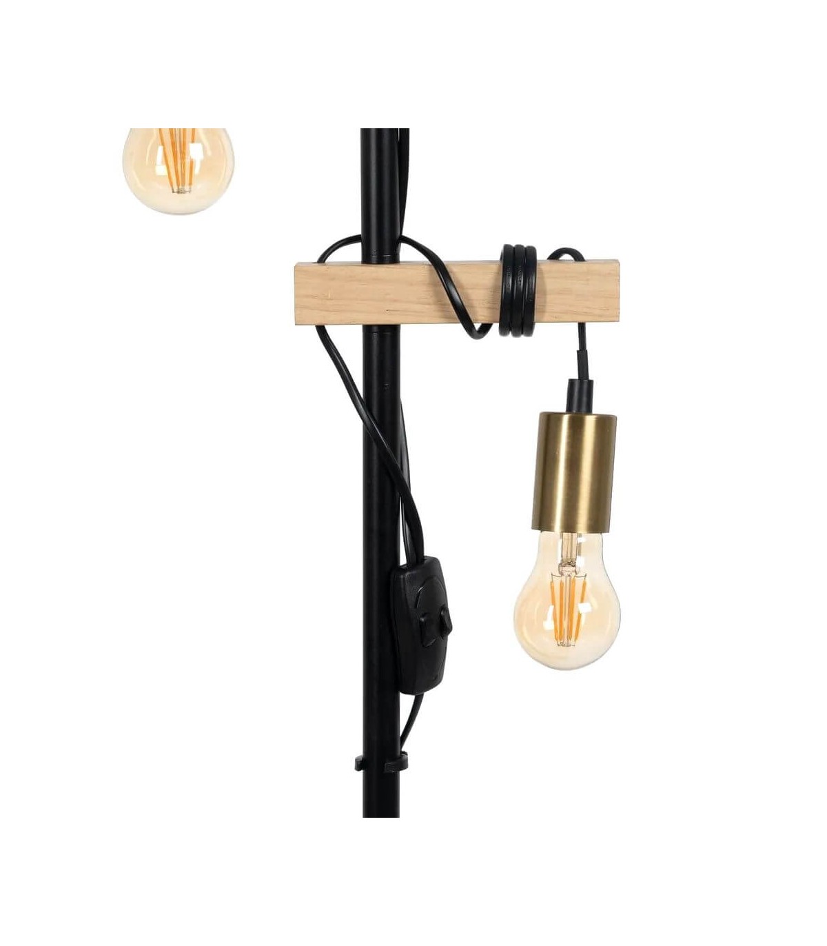 LAMPARA DE PIE 26 Ø X 149 BILLAS METAL NEGRO MADERA NATURAL