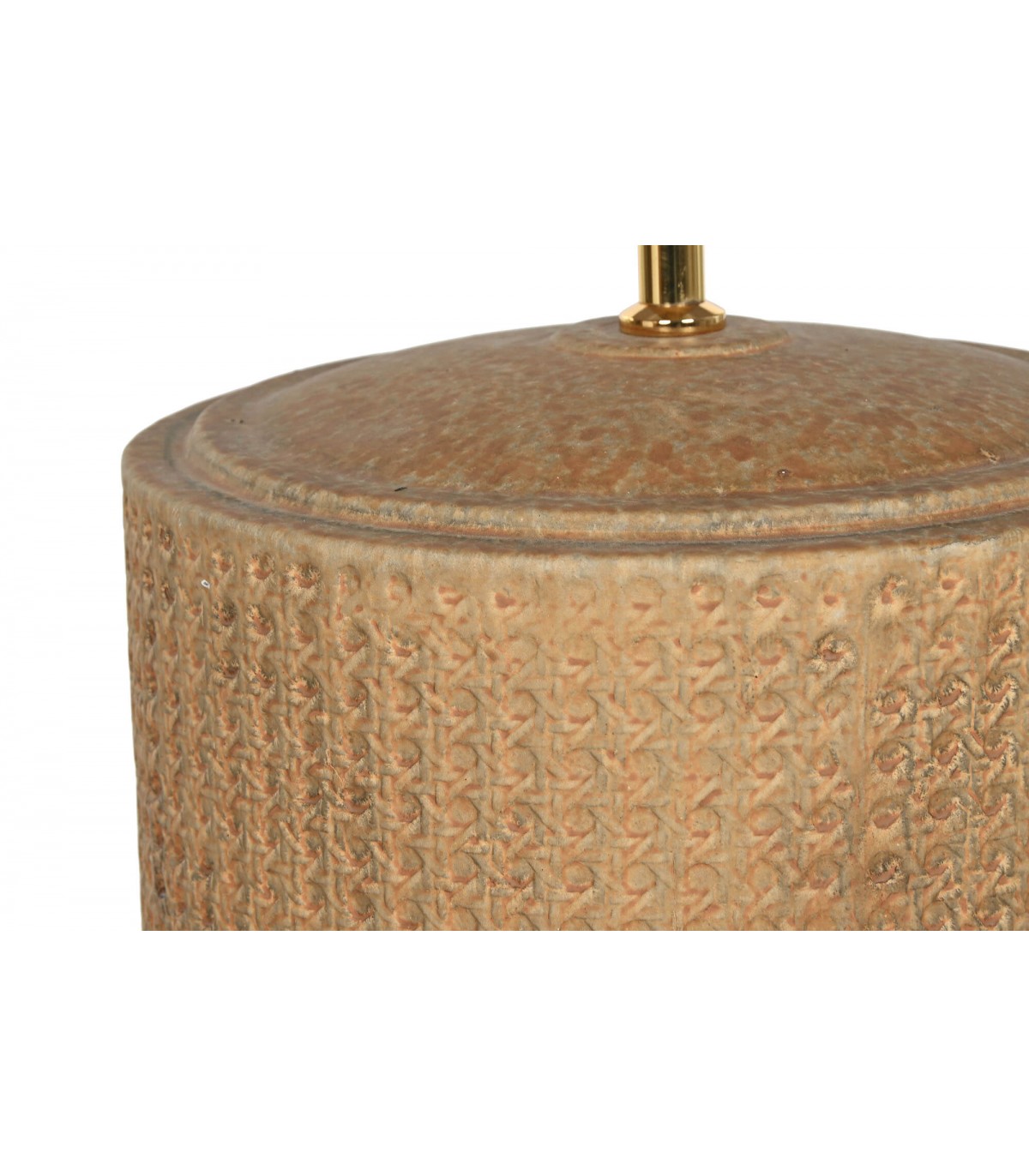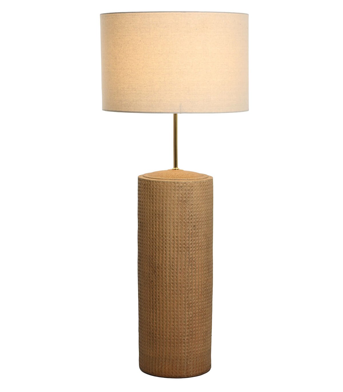 LAMPARA DE PIE 50 Ø X 125 MURCHA CERAMICA MARRON TEXTIL LINO BEIGE