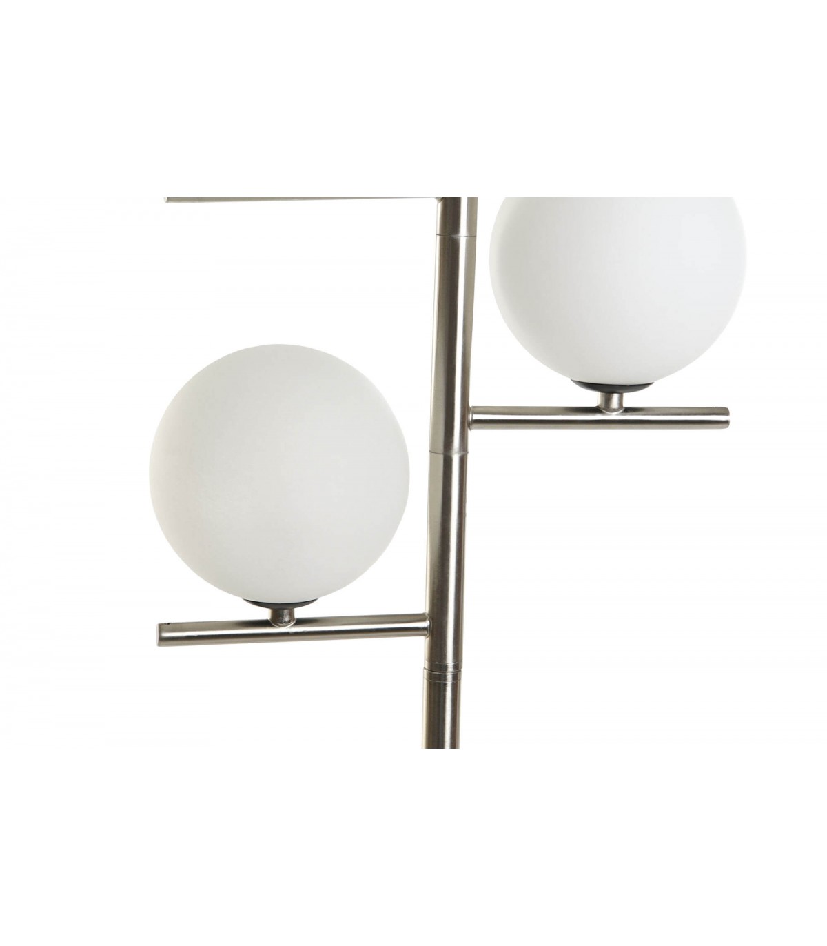 Equipada con tres pantallas en forma de globo de cristal, esta lámpara proporciona una luz ambiental suave y acogedora, perfecta para salones, dormitorios o rincones de lectura. Un elemento decorativo funcional que combina diseño clásico y modernidad, ideal para realzar la decoración de interiores contemporáneos o vintage.