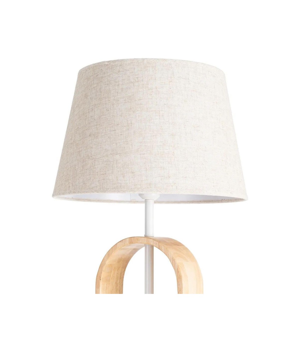 • 🛠️ Materiales: Pie de madera y metal, pantalla de lino.