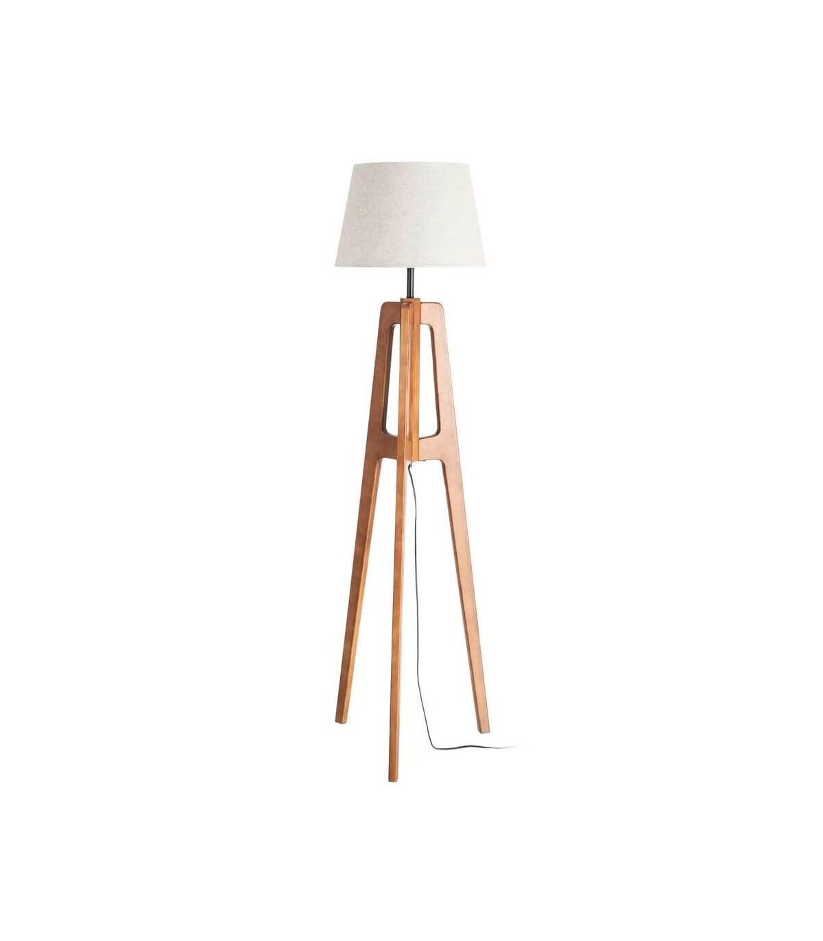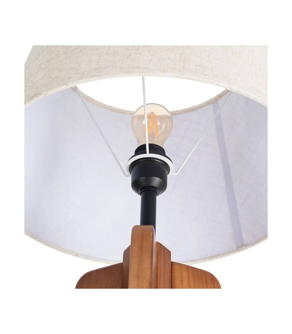 🎨 Acabado: Pie madera cerezo, pantalla lino crudo.