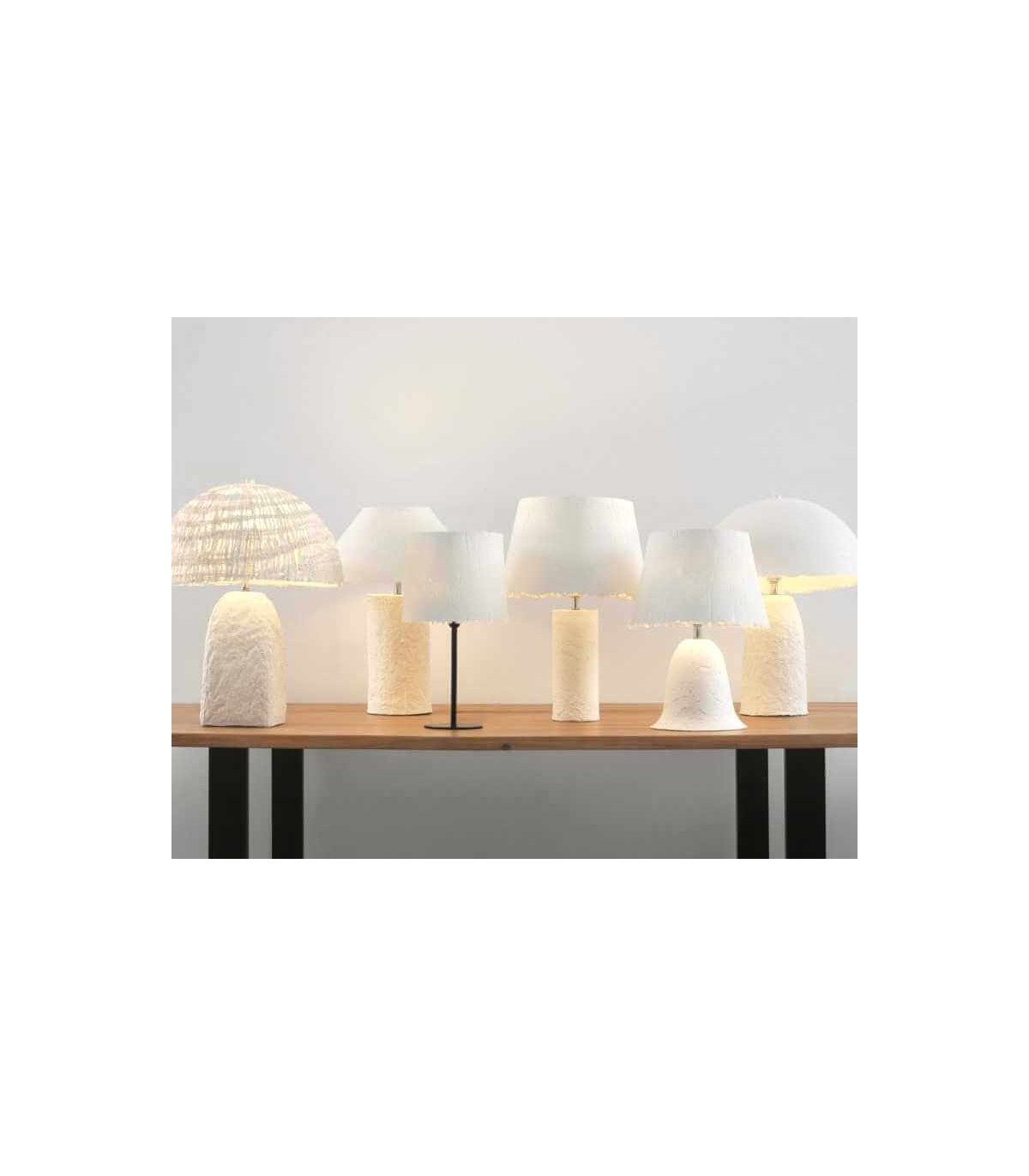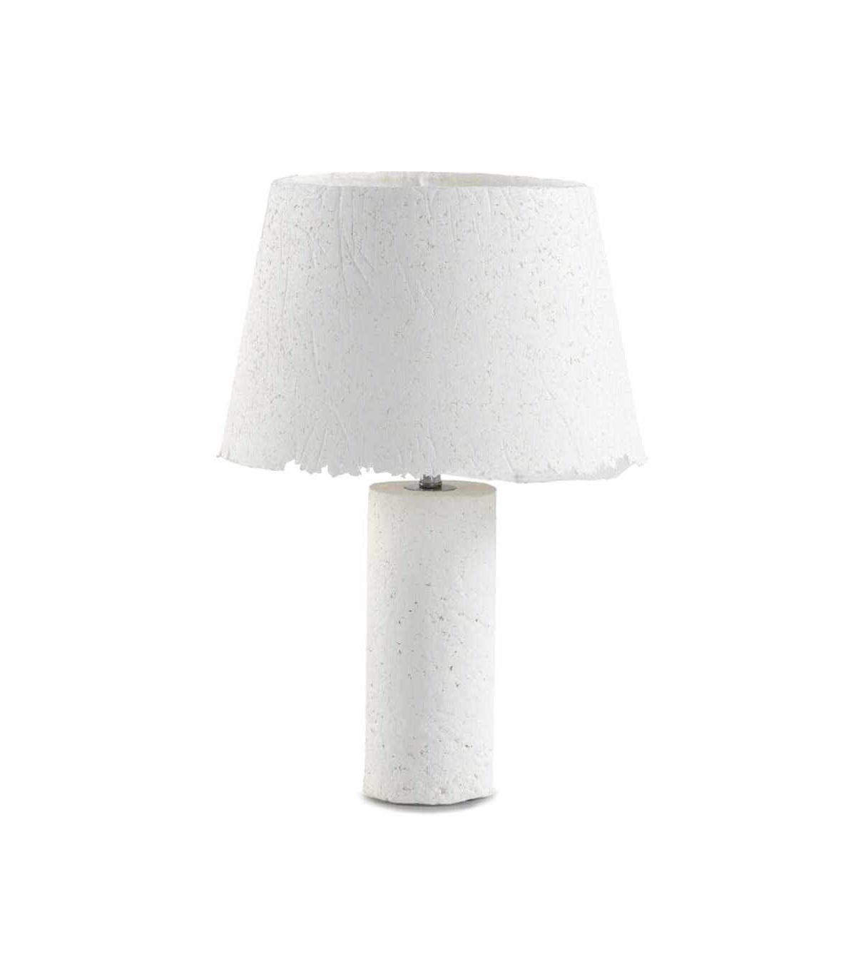 Lámpara de sobremesa fabricada artesanalmente en papel maché color blanco, una lámpara resistente, recomendada para muebles de tamaño medido o grande.