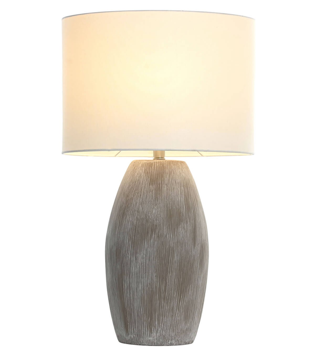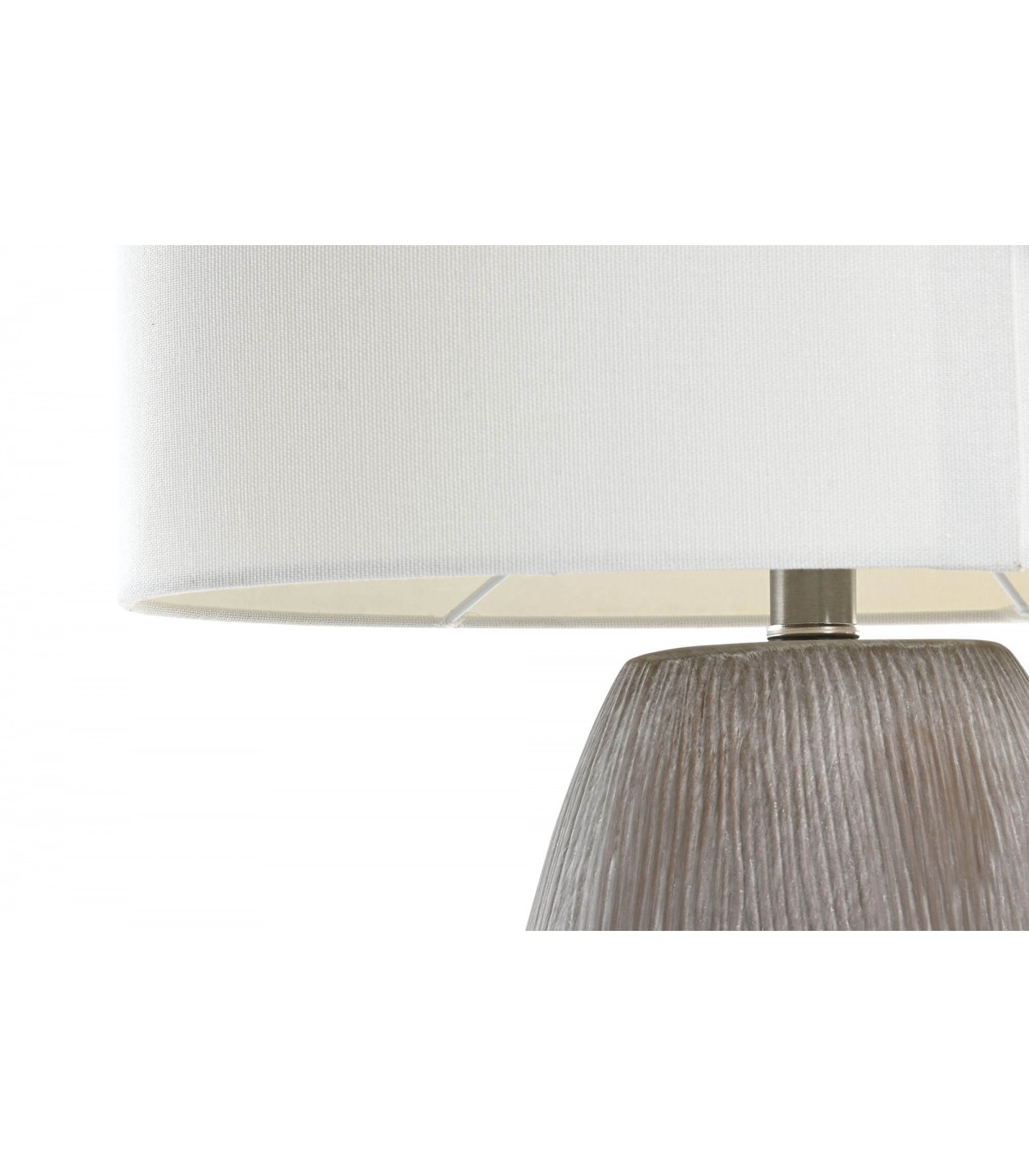 Lámpara de sobremesa de cerámica marrón con pantalla ovalada de lino blanco
