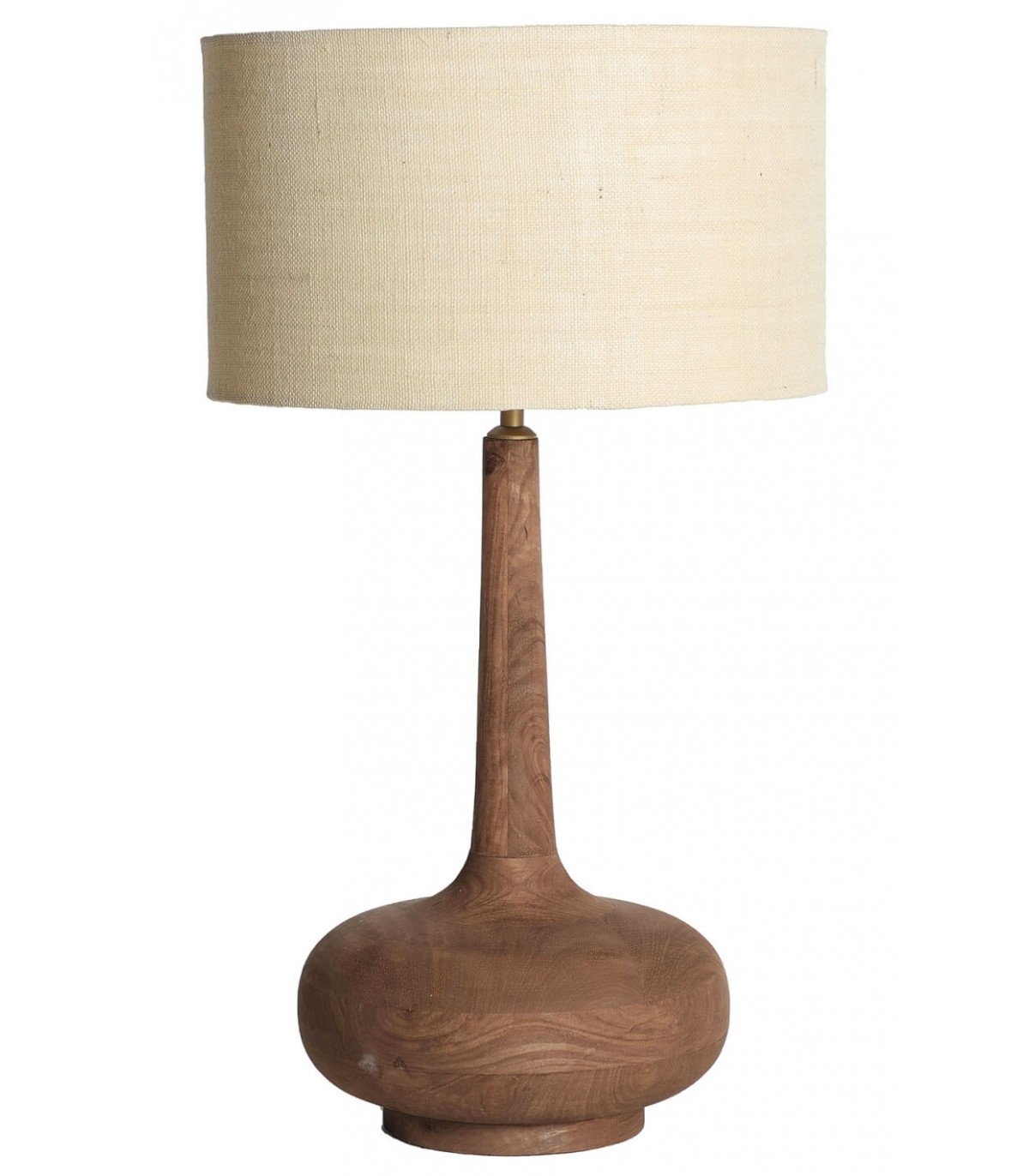 LAMPARA DE SOBREMESA GRANDE 40 Ø X 73 BUBLE MADERA MANGO Y YUTE