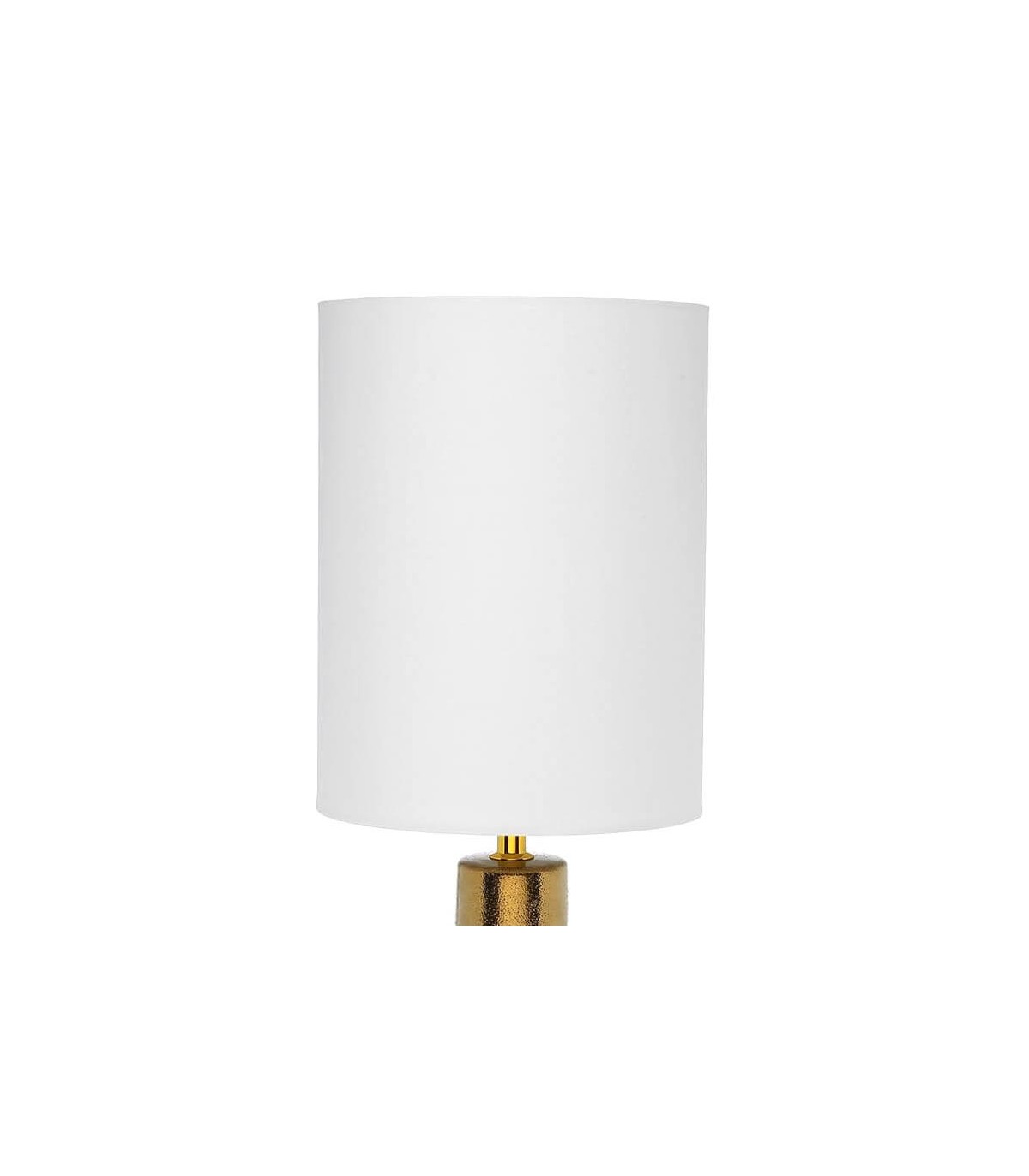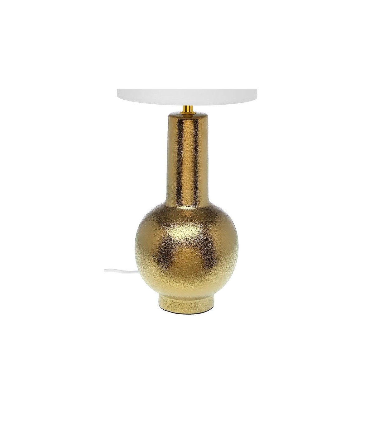 LAMPARA DE SOBREMESA 20 Ø GRUCHA CERAMICA ORO TEXTIL BLANCO