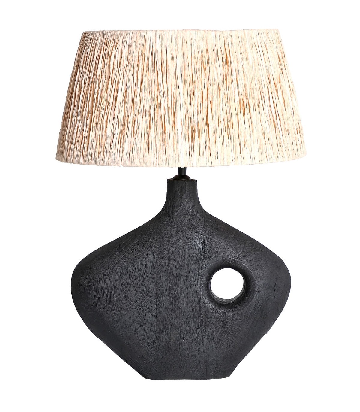 LAMPARA DE SOBREMESA 45 X 43 X 63 LAURIN MADERA NEGRA RAFIA NATURAL