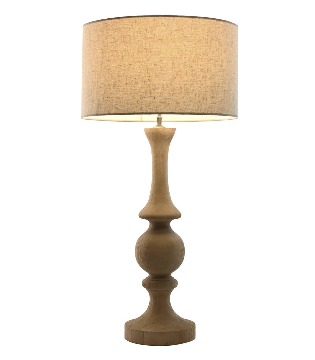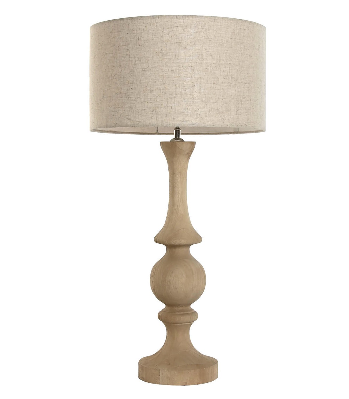 Acabado, base de madera de mango torneada natural, pantalla en algodón color beige. Fabricación artesanal. entendemos las variaciones de tonalidad, tamaño y forma o ciertas imperfecciones (grietas, nudos, marcas) como un valor añadido que la convierten en pieza única.